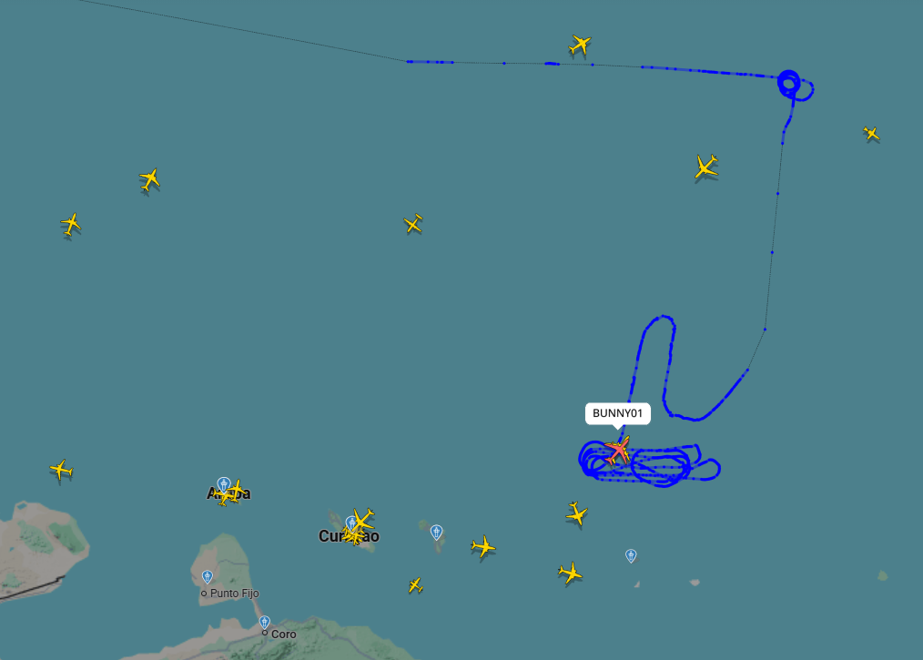 Tras realizar una serie de vueltas frente a las costas venezolanas, los tres B-52 dejaron la siguiente trayectoria: