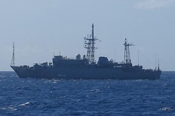 Un helicóptero y un barco de la Guardia Costera respondieron de inmediato y desde entonces han estado monitoreando el buque de inteligencia ruso de la clase Vishnya.