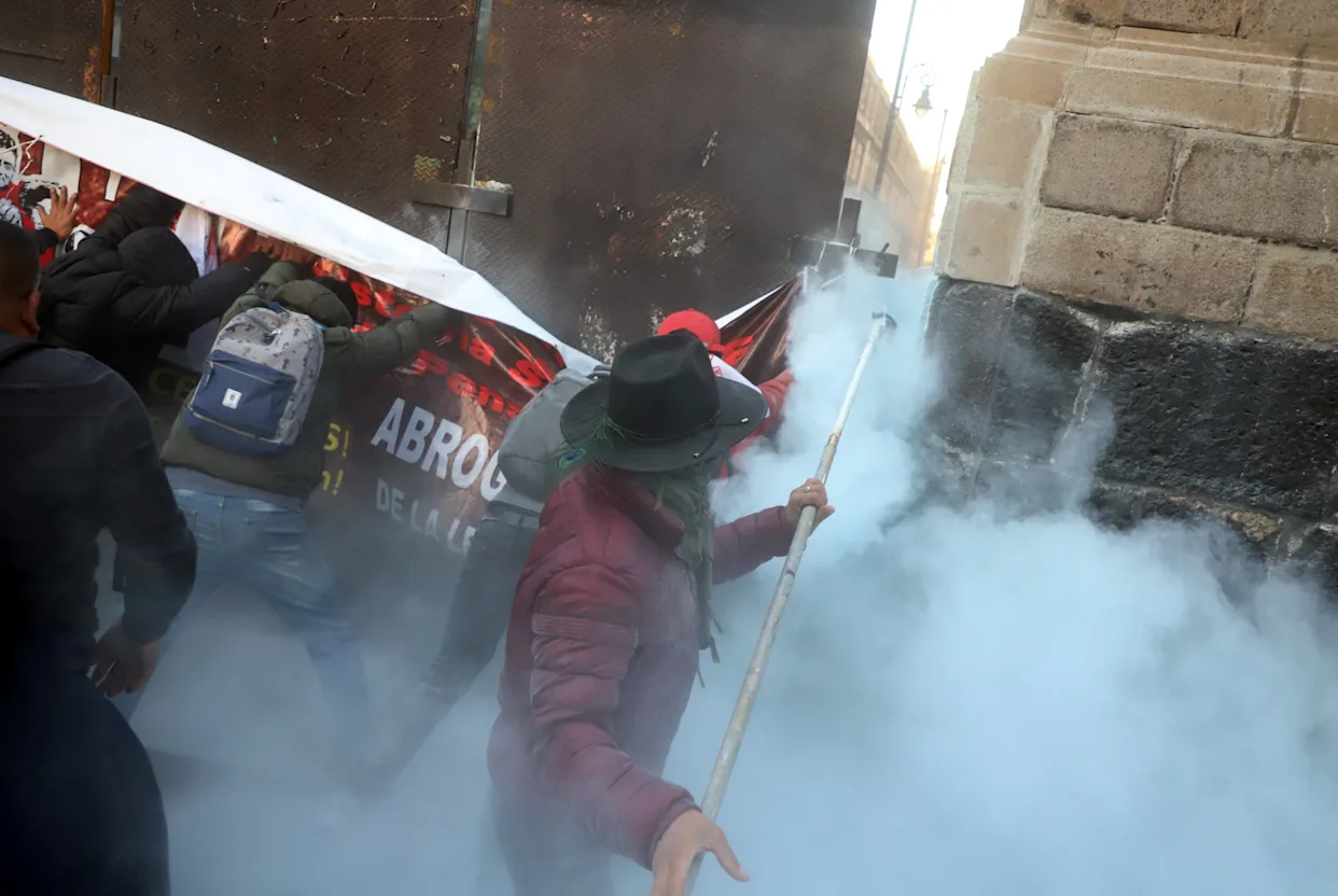 La manifestación derivó en disturbios cuando un grupo de personas logró derribar las vallas de seguridad que resguardaban el Palacio Nacional.
