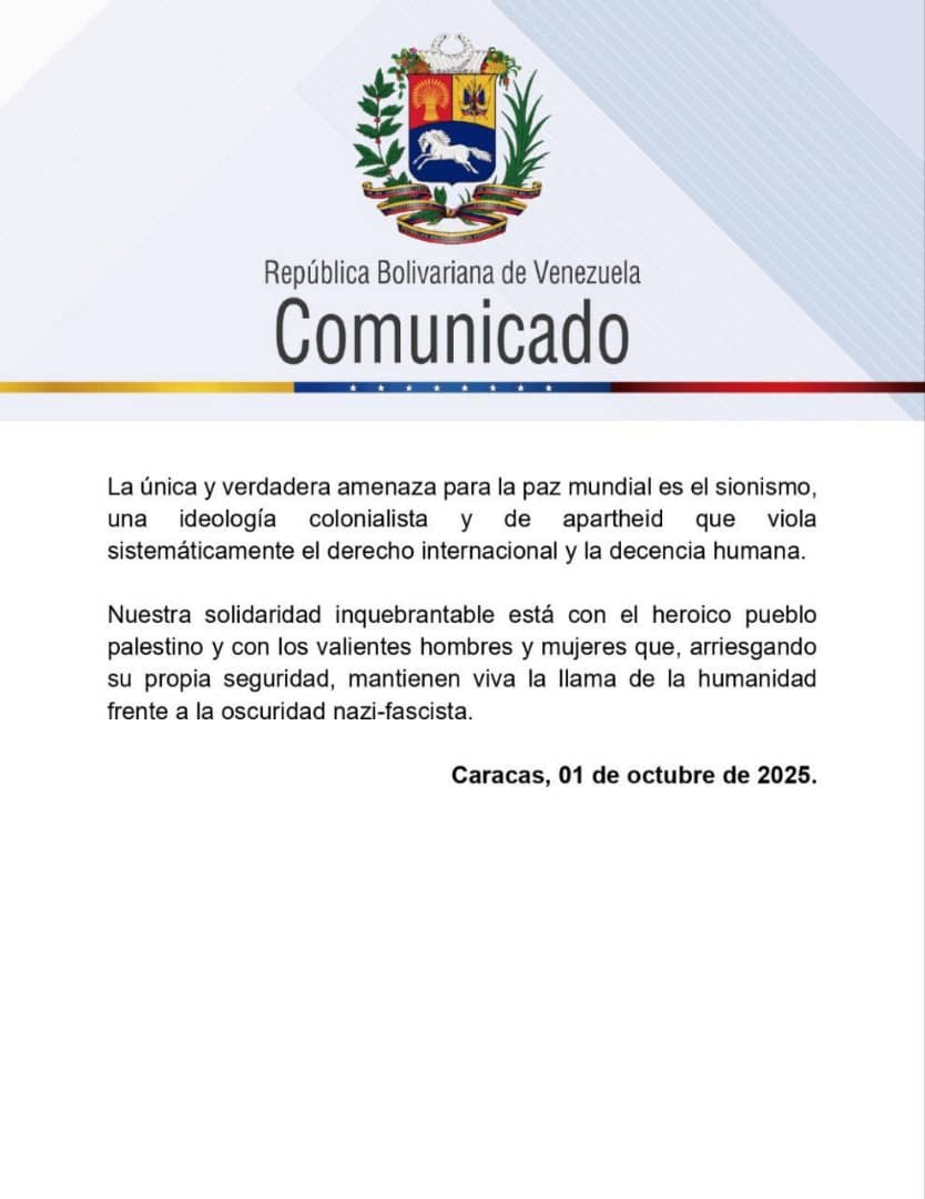 A través de un comunicado difundido en el canal de Telegram del canciller Yván Gil, calificaron el abordaje del Ejército israelí como un «acto de piratería» que según , «expone la naturaleza criminal del régimen sionista».