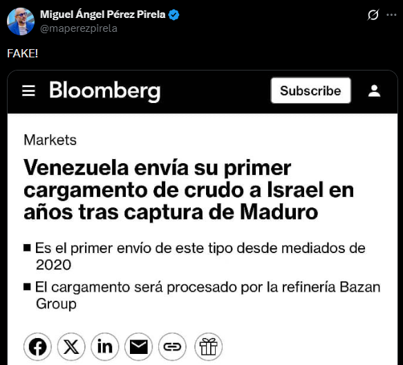 Según el reporte que el chavista tildó de «fake», este sería el primer negocio de este tipo desde el 2020, sugiriendo que la caída del mando de Maduro habría provocado un «volantazo» en las rutas petroleras, moviendo el petróleo que antes iba a China hacia puertos israelíes, estadounidenses y españoles.