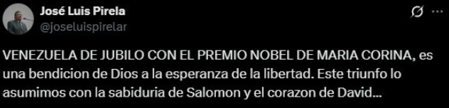 José Luis Pirela: «Es una bendición de Dios a la esperanza de la libertad. Este triunfo lo asumimos con la sabiduría de Salomón y el corazón de David».