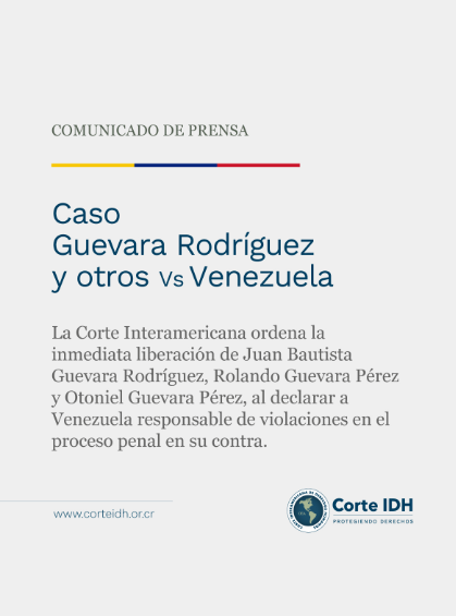 La Corte Interamericana de Derechos Humanos (Corte IDH) notificó este lunes una sentencia en el caso Guevara Rodríguez y otros Vs. Venezuela, en la cual ordena al régimen chavista la inmediata liberación de Juan Bautista Guevara Rodríguez, Rolando de Jesús Guevara Pérez y Otoniel José Guevara Pérez.