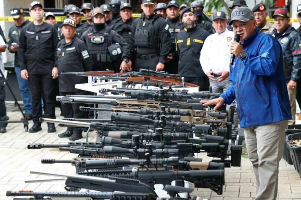 Tras la captura, estas personas condujeron a las autoridades a un nuevo hallazgo, según Cabello, quien informó desde el estado Miranda sobre la incautación de «23 rifles de francotirador de distintos calibres, dos escopetas, un arma automática tipo rifle, municiones de todos los calibres, lingotes de plomo que los utilizan para el diseño de balas, un fusil (calibre) .50», entre otros, además de materiales para hacer municiones y armas.