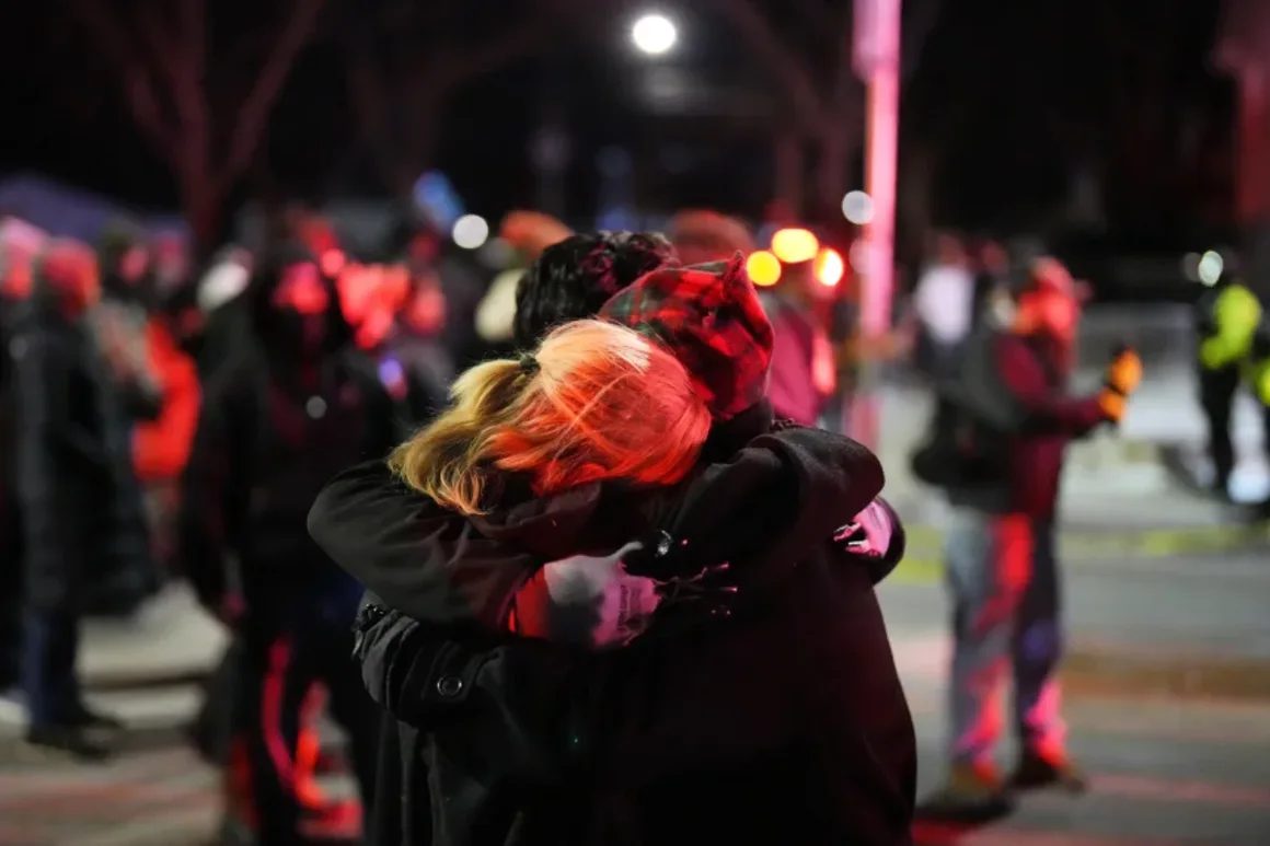 En las horas siguientes, los manifestantes se reunieron cerca del lugar y se enfrentaron a las fuerzas del orden, que lanzaron múltiples botes de gas lacrimógeno, bolas de pimienta y lo que sonaban como granadas aturdidoras antes de que las autoridades pidieran a la gente que “se fueran a casa”.