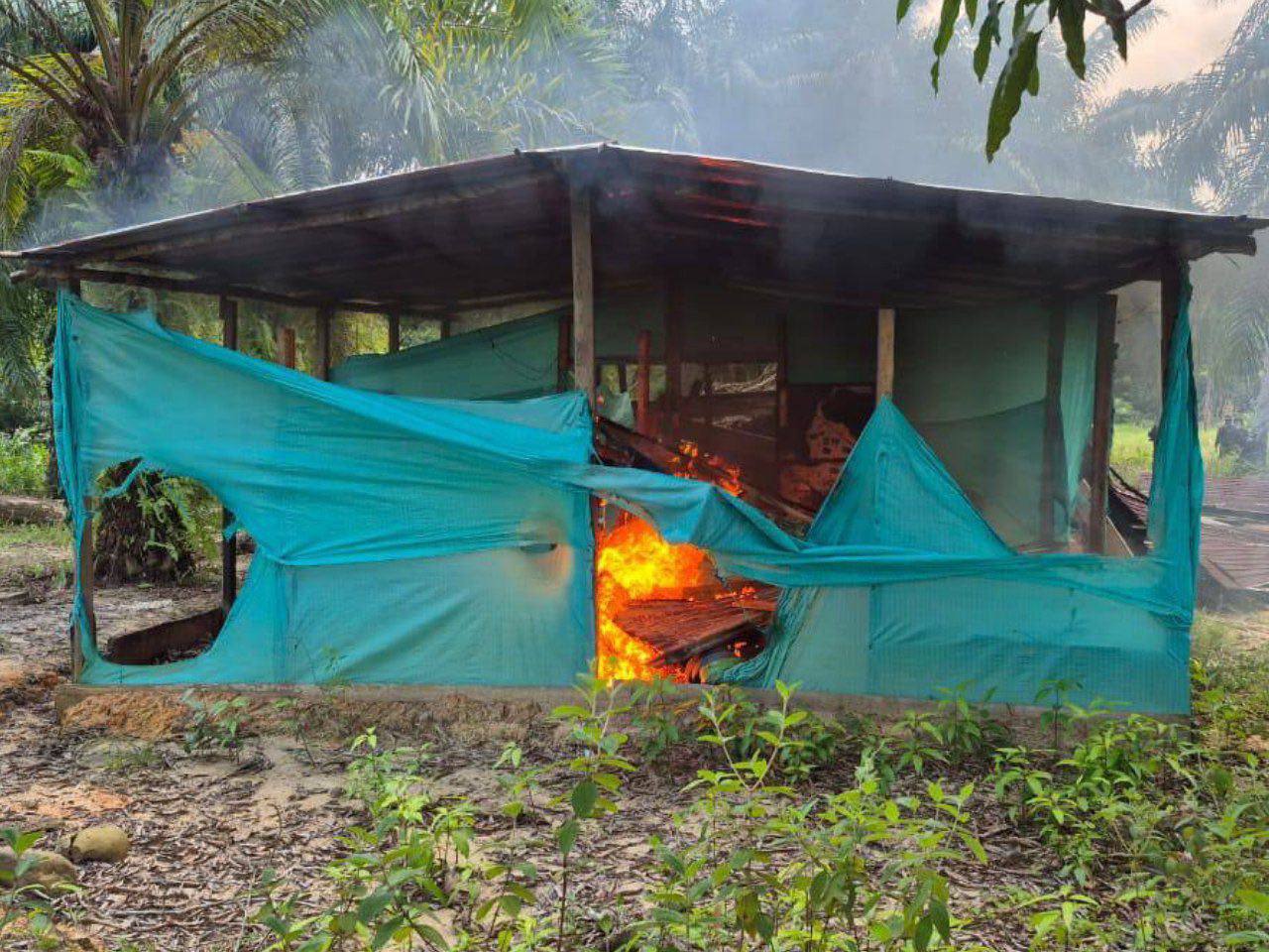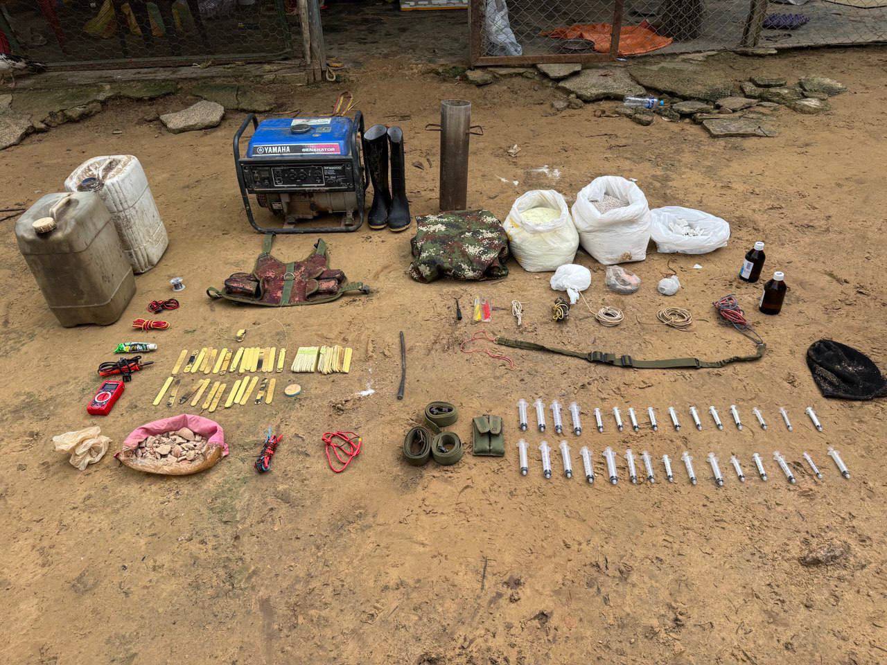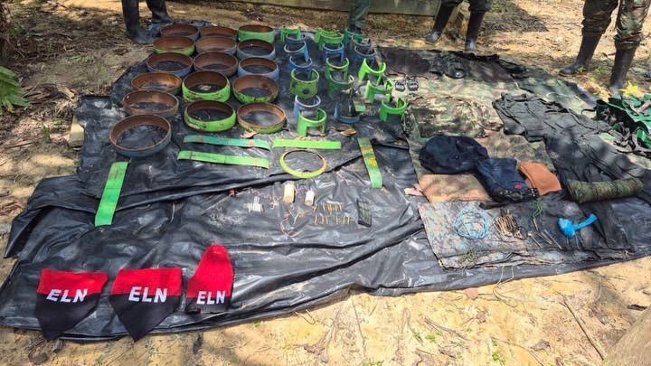 Durante patrullajes fluviales y terrestres en las adyacencias de la Troncal 6, efectivos militares localizaron dos campamentos logísticos, uno de ellos presuntamente destinado a la fabricación de explosivos. En el lugar fueron halladas granadas fragmentarias, un mortero artesanal, un arma de fuego calibre 9 milímetros, municiones de distintos calibres y una cinta eslabonada con 40 cartuchos 7,62 mm.