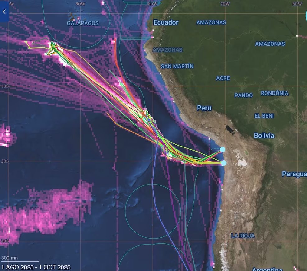 Lo que antes era un tránsito periódico de embarcaciones se transformó en una operación permanente respaldada por subsidios estatales, prácticas cuestionadas y un aumento sostenido del esfuerzo pesquero. Los datos, las imágenes satelitales y los testimonios de expertos revelan un patrón que recorre toda la región: China intensifica su presencia en el Pacífico sur, desplaza puertos tradicionales y encuentra en Chile un nuevo punto de apoyo, aún cuando parte de esa flota ha sido sancionada por pesca ilegal y abusos laborales.