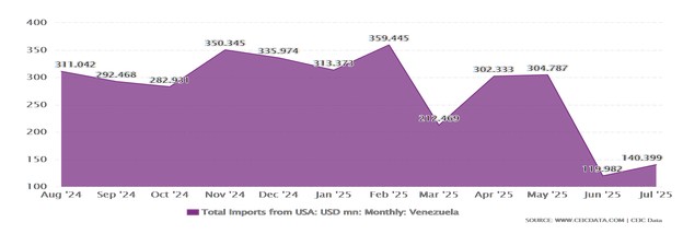 Dentro de la misma tónica encontramos las importaciones de los Estados Unidos que sufren, para junio 2025, una sustancial disminución.
