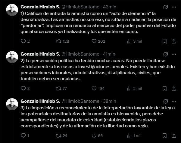 Himiob subrayó que es necesario analizar el texto con calma, ya que, a su juicio, contiene aspectos que podrían desnaturalizar el alcance real de la amnistía.