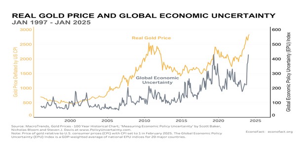 Devaluación del dólar: El Oro como refugio en momentos de incertidumbre alcanzo un nuevo máximo cercano a los 3.473 dólares la onza troy. Por su parte, la relación del dólar con el Euro alcanzo un nuevo máximo con 1,20.