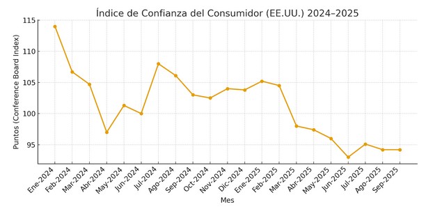 2 La desaceleración del consumo refleja la consecuencia de la caída en el Índice de Confianza del Consumidor que ve el su futuro con mayor desconfianza que en el pasado reciente.