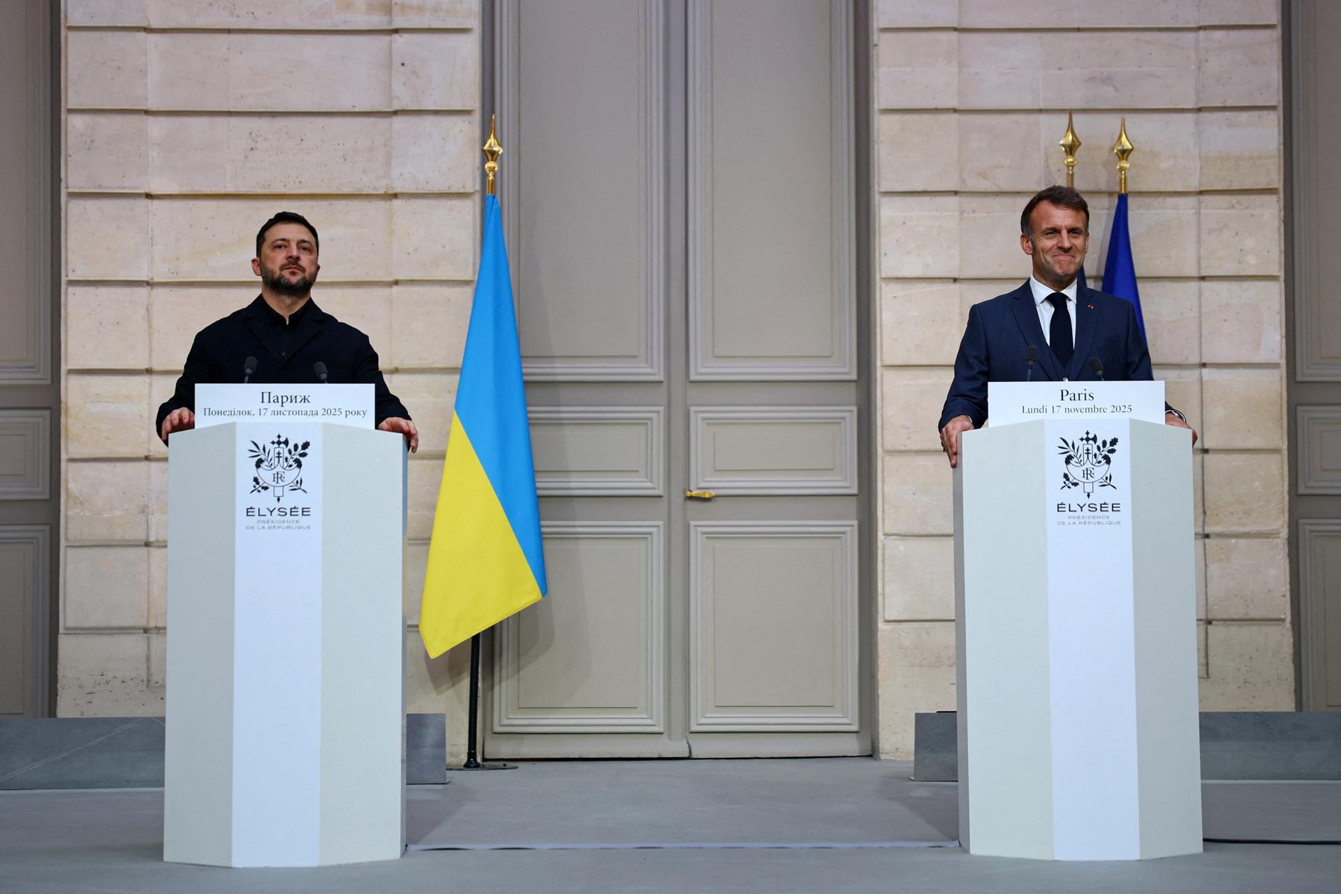 Con los acuerdos firmados hoy entre París y Kiev, Francia «hoy da un nuevo paso» para colaborar con Ucrania, a la que Macron presentó como «la primera línea de defensa de Europa». EFE