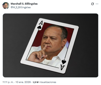 Marshall Billingslea volvió a sacudir la opinión pública internacional al publicar en su cuenta de X una imagen de un As de picas con el rostro de Diosdado Cabello.