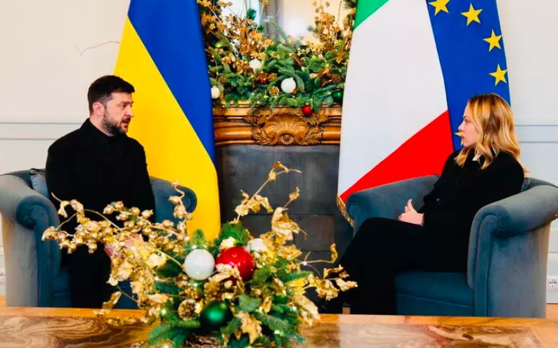 La primera ministra de Italia, Giorgia Meloni, y el presidente de Ucrania, Volodímir Zelenski, se han reunido este martes 9 de diciembre en Roma y han coincidido en la necesidad de mantener la presión sobre Rusia para que negocie la paz «de buena fe».