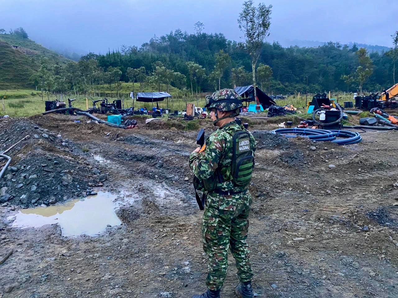 Las unidades mineras se extendían sobre un área de 22 hectáreas “donde se evidenciaba grave afectación ambiental, incluyendo 8 hectáreas de suelo removido, deforestación y degradación de ecosistemas”, señaló el Ejército.