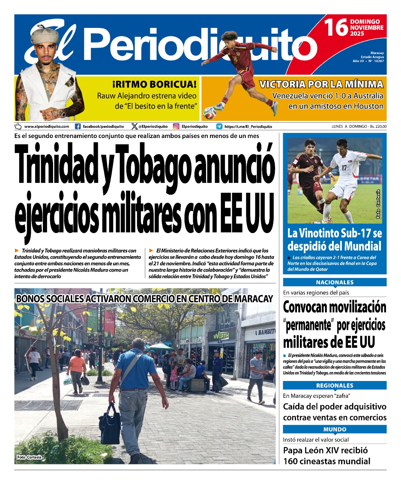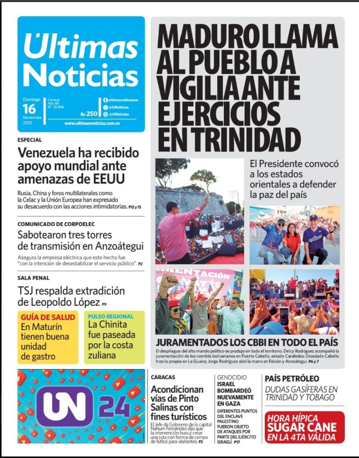 16 Nov 2025, 11:05 • 1 minuto de lectura Portadas de este domingo 16 de noviembre de 2025 Por La Patilla Compartir Compartir noticia Facebook Twitter / X WhatsApp Telegram LinkedIn Copiar enlace Enlaces relacionados Ver noticia original