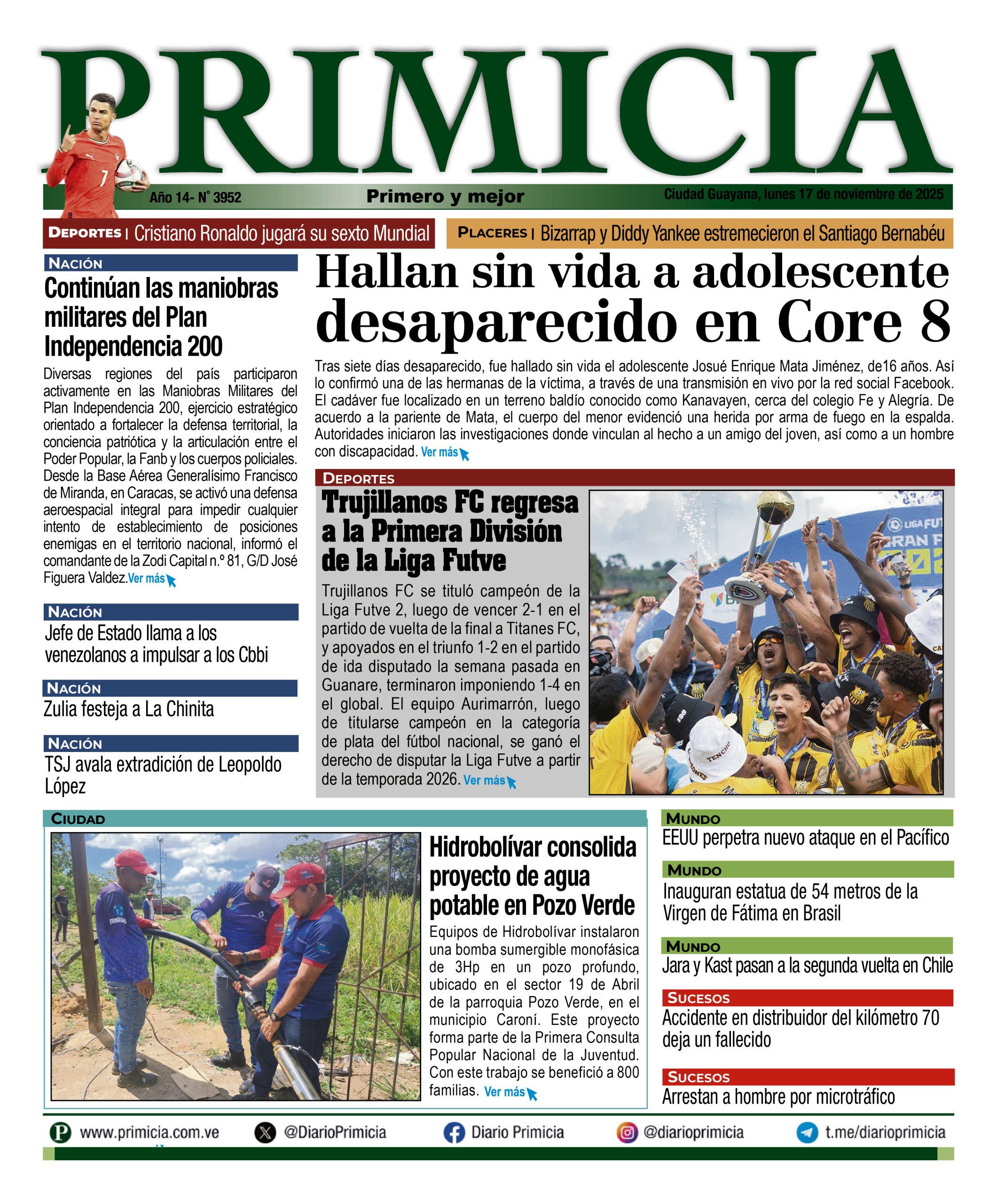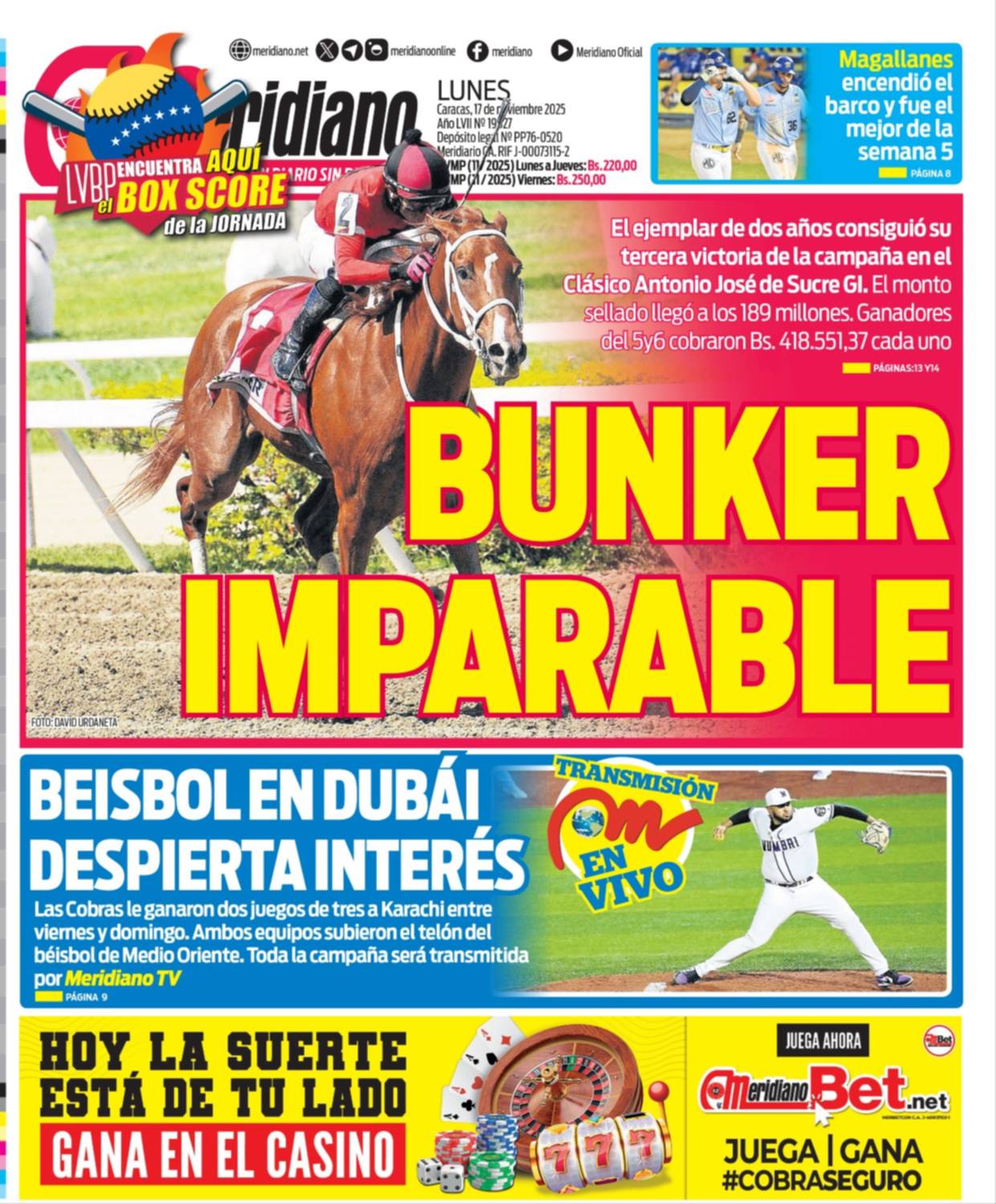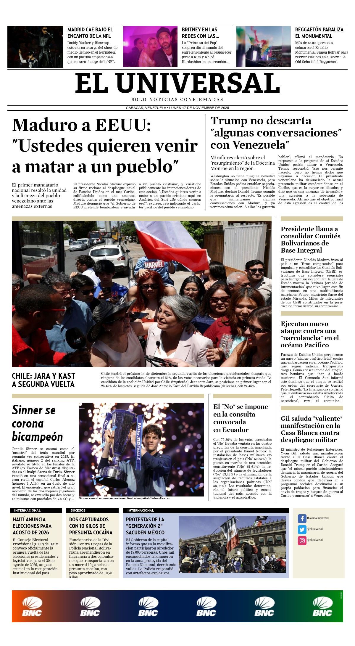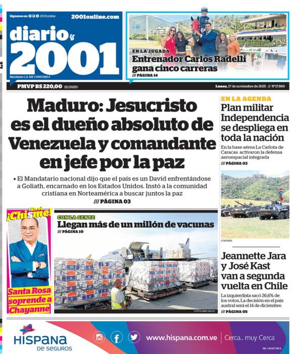 17 Nov 2025, 09:14 • 1 minuto de lectura Portadas de este lunes 17 de noviembre de 2025 Por La Patilla Compartir Compartir noticia Facebook Twitter / X WhatsApp Telegram LinkedIn Copiar enlace Enlaces relacionados Ver noticia original