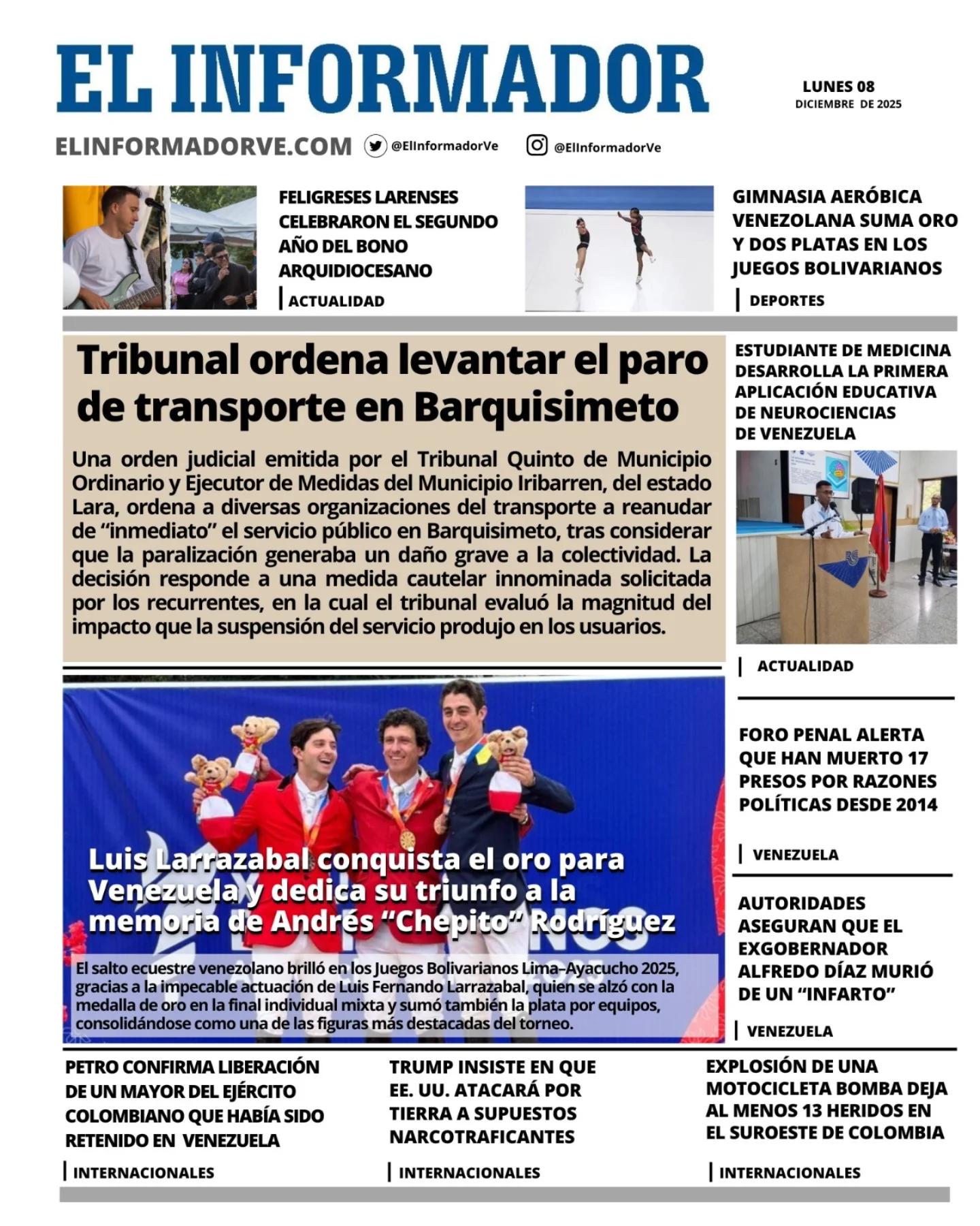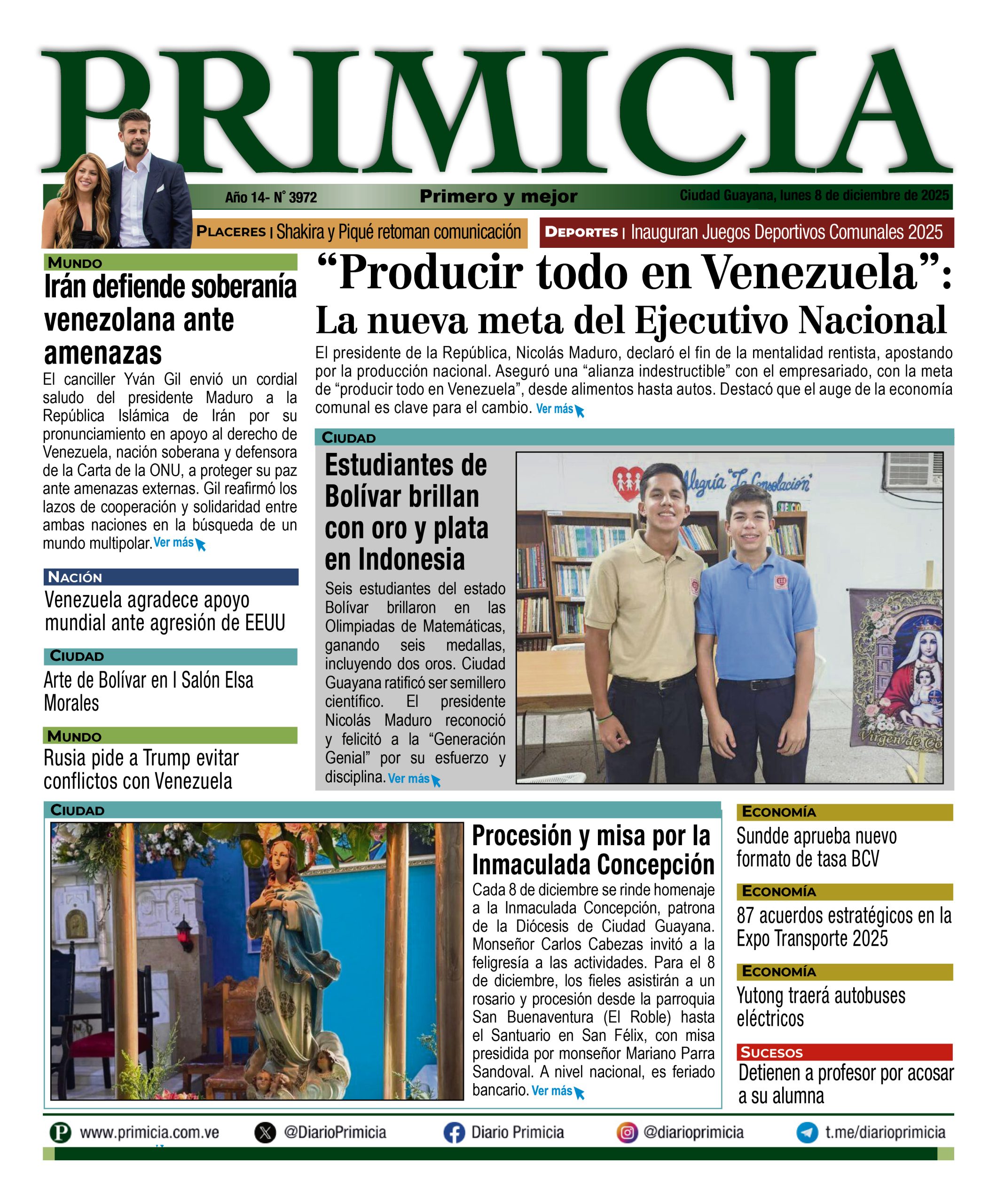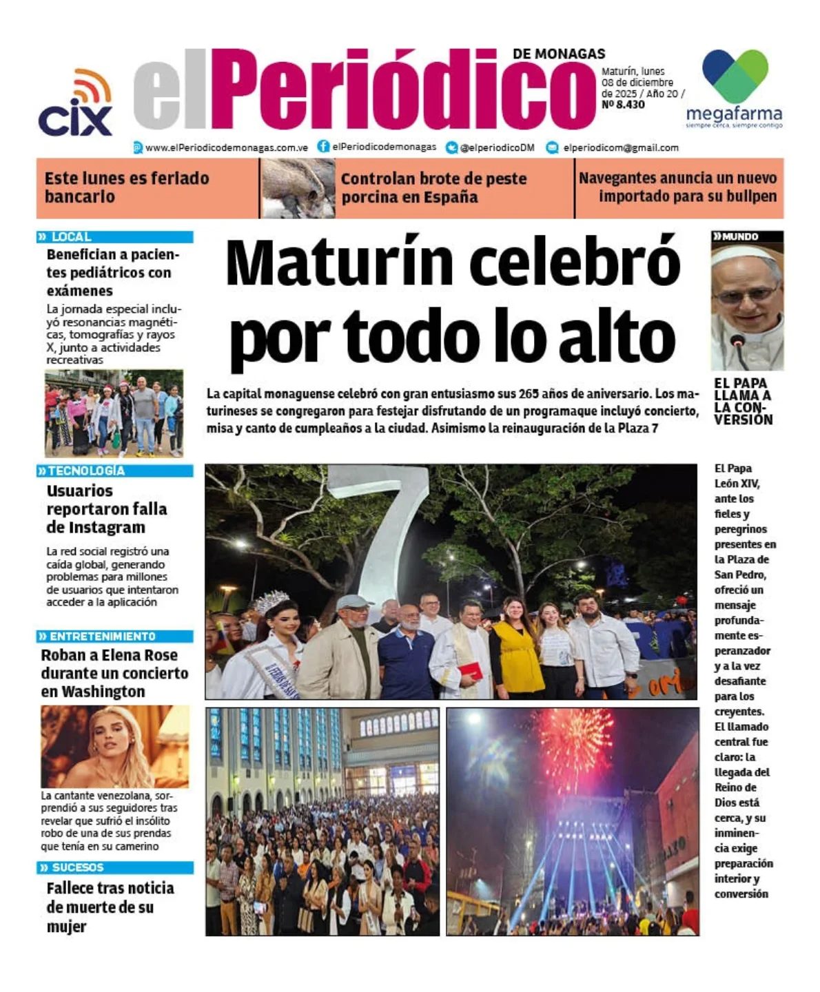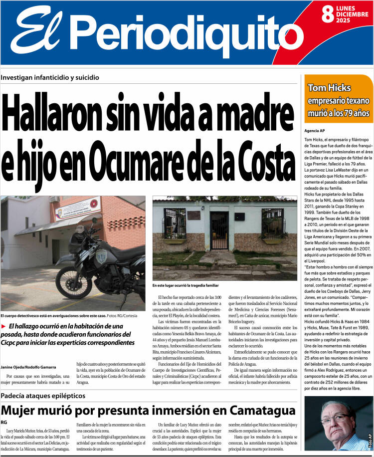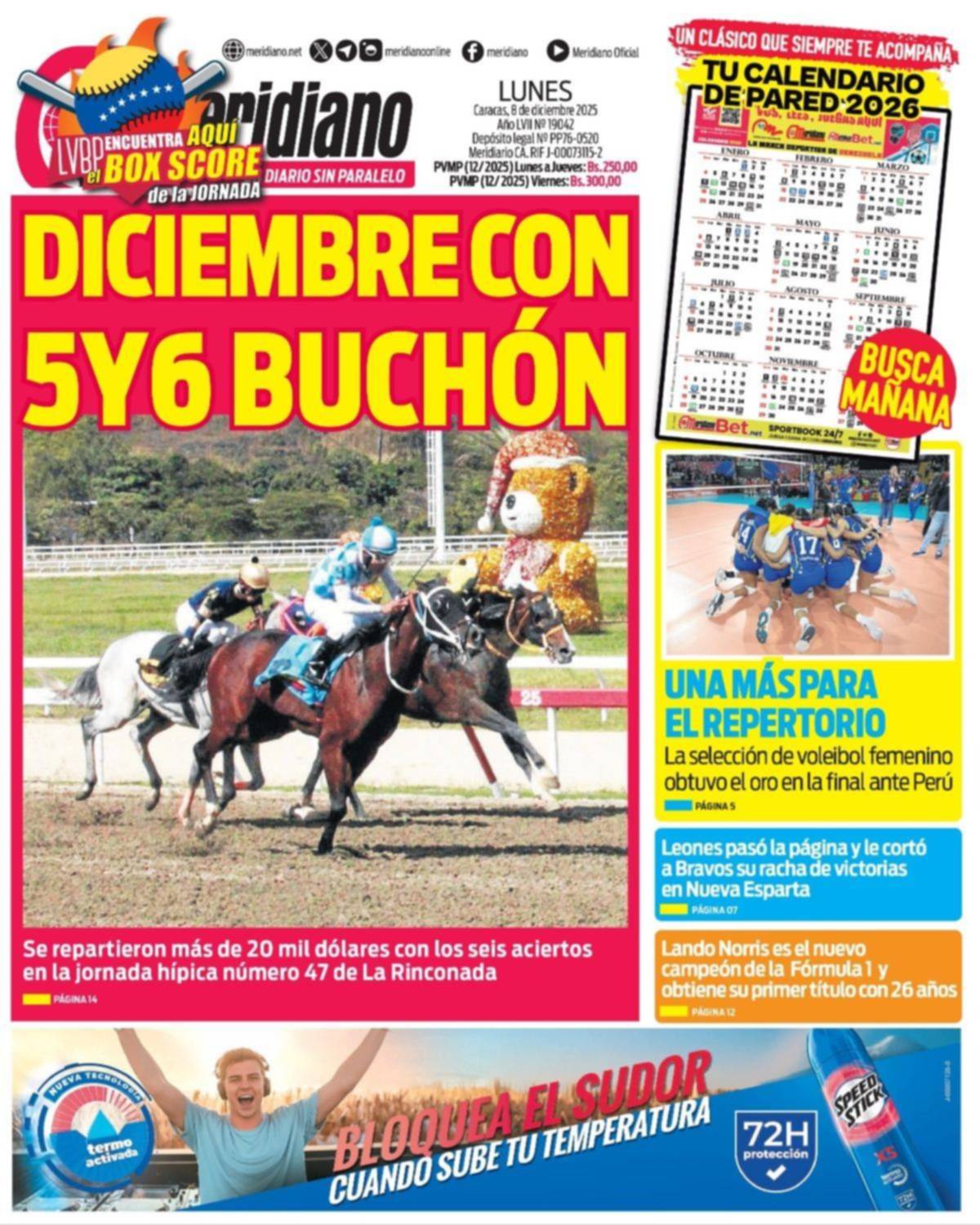 08 Dec 2025, 09:24 • 1 minuto de lectura Portadas de este lunes 8 de diciembre de 2025 Por La Patilla Compartir Compartir noticia Facebook Twitter / X WhatsApp Telegram LinkedIn Copiar enlace Enlaces relacionados Ver noticia original