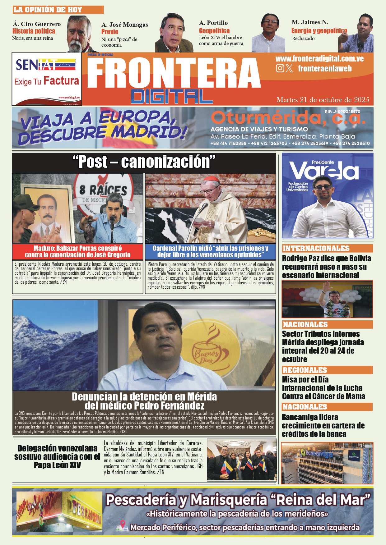 Portadas de este martes 21 de octubre de 2025
