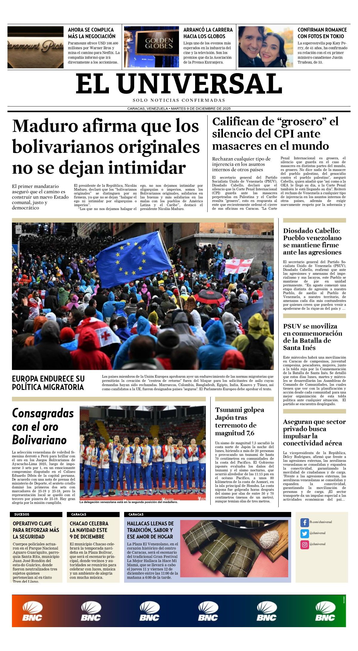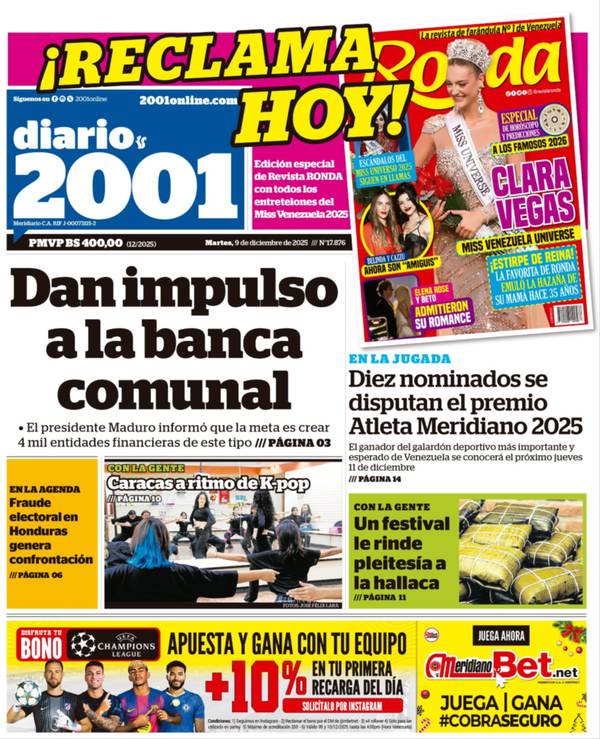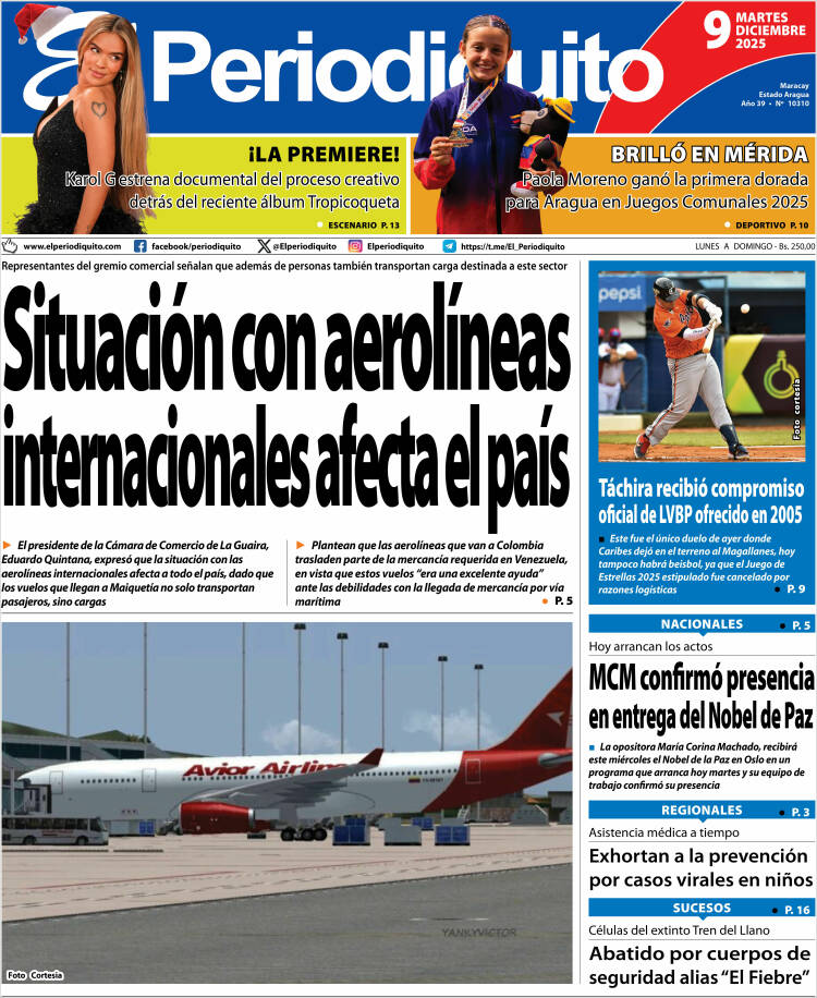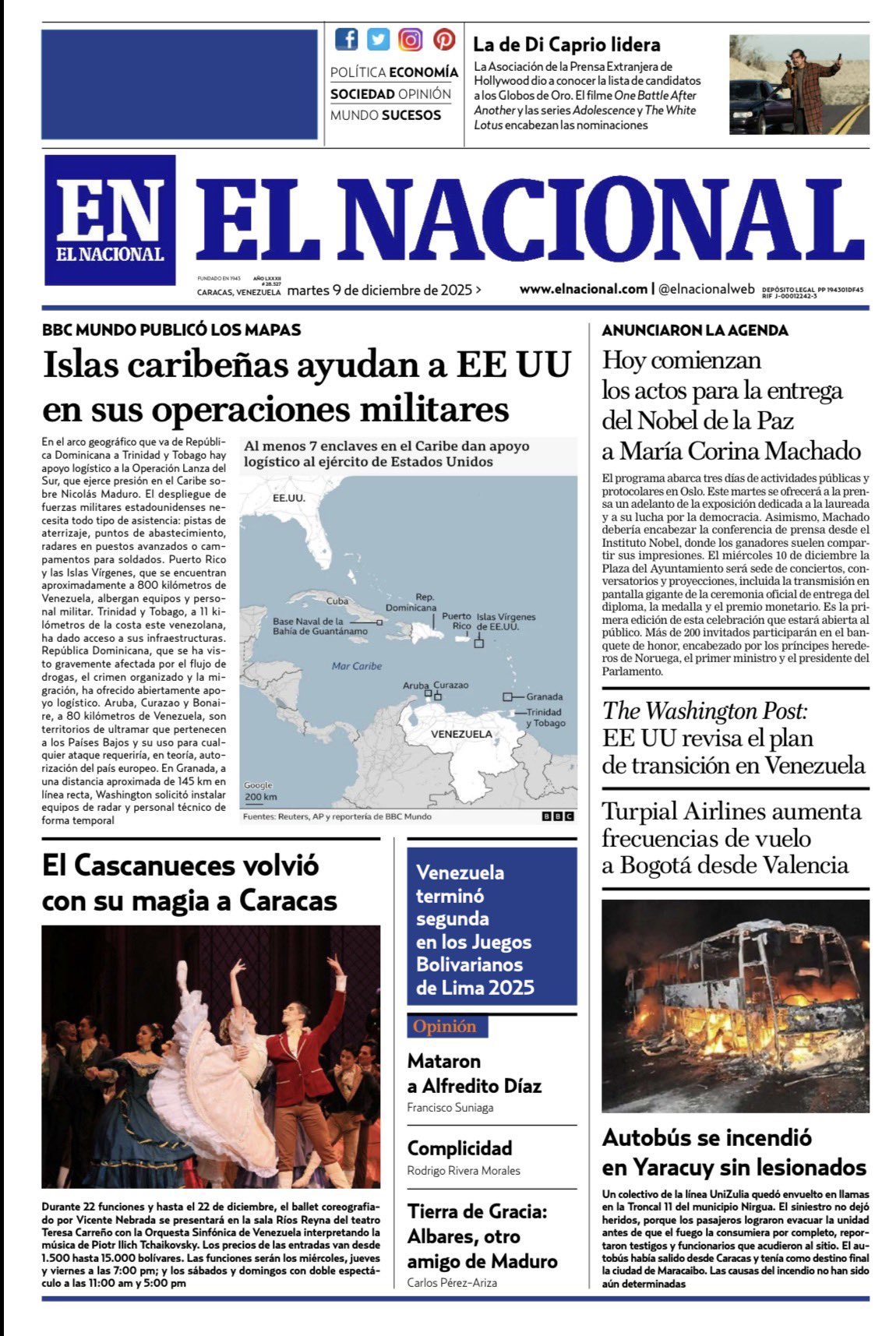 09 Dec 2025, 09:16 • 1 minuto de lectura Portadas de este martes 9 de diciembre de 2025 Por La Patilla Compartir Compartir noticia Facebook Twitter / X WhatsApp Telegram LinkedIn Copiar enlace Enlaces relacionados Ver noticia original