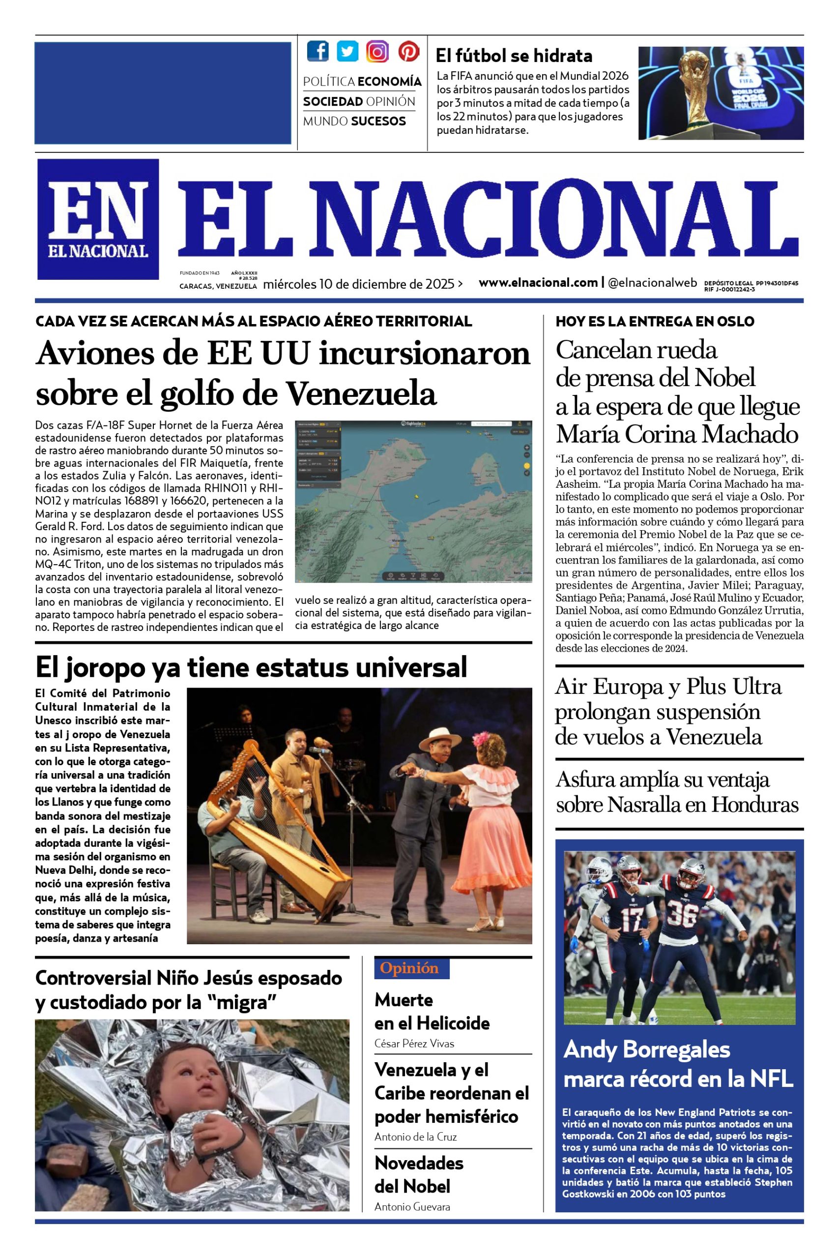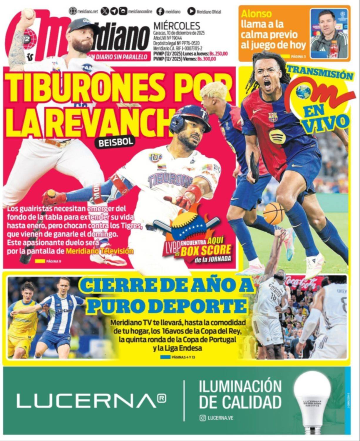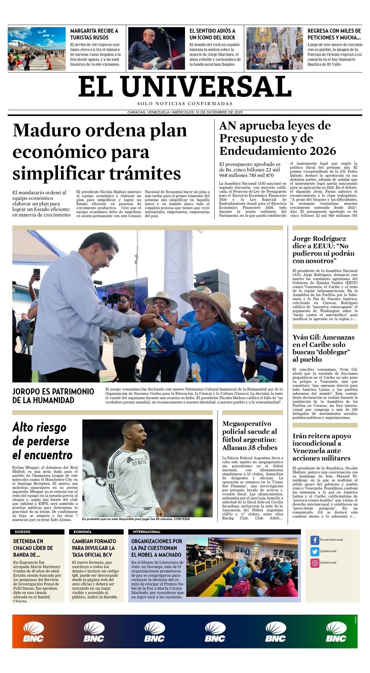 10 Dec 2025, 09:04 • 1 minuto de lectura Portadas de este miércoles 10 de diciembre de 2025 Por La Patilla Compartir Compartir noticia Facebook Twitter / X WhatsApp Telegram LinkedIn Copiar enlace Enlaces relacionados Ver noticia original