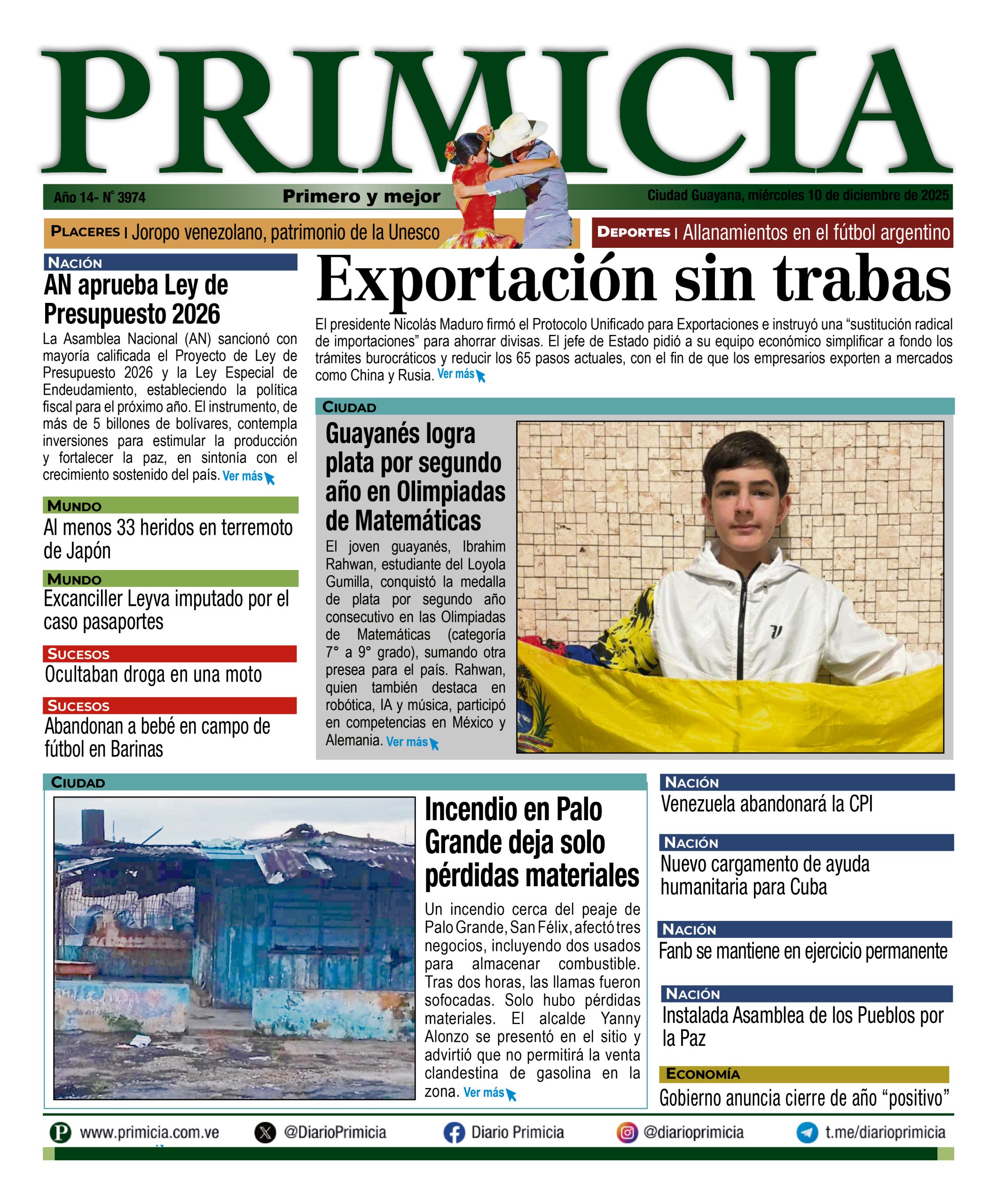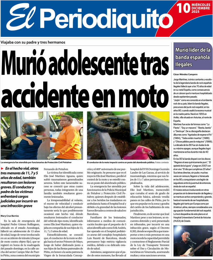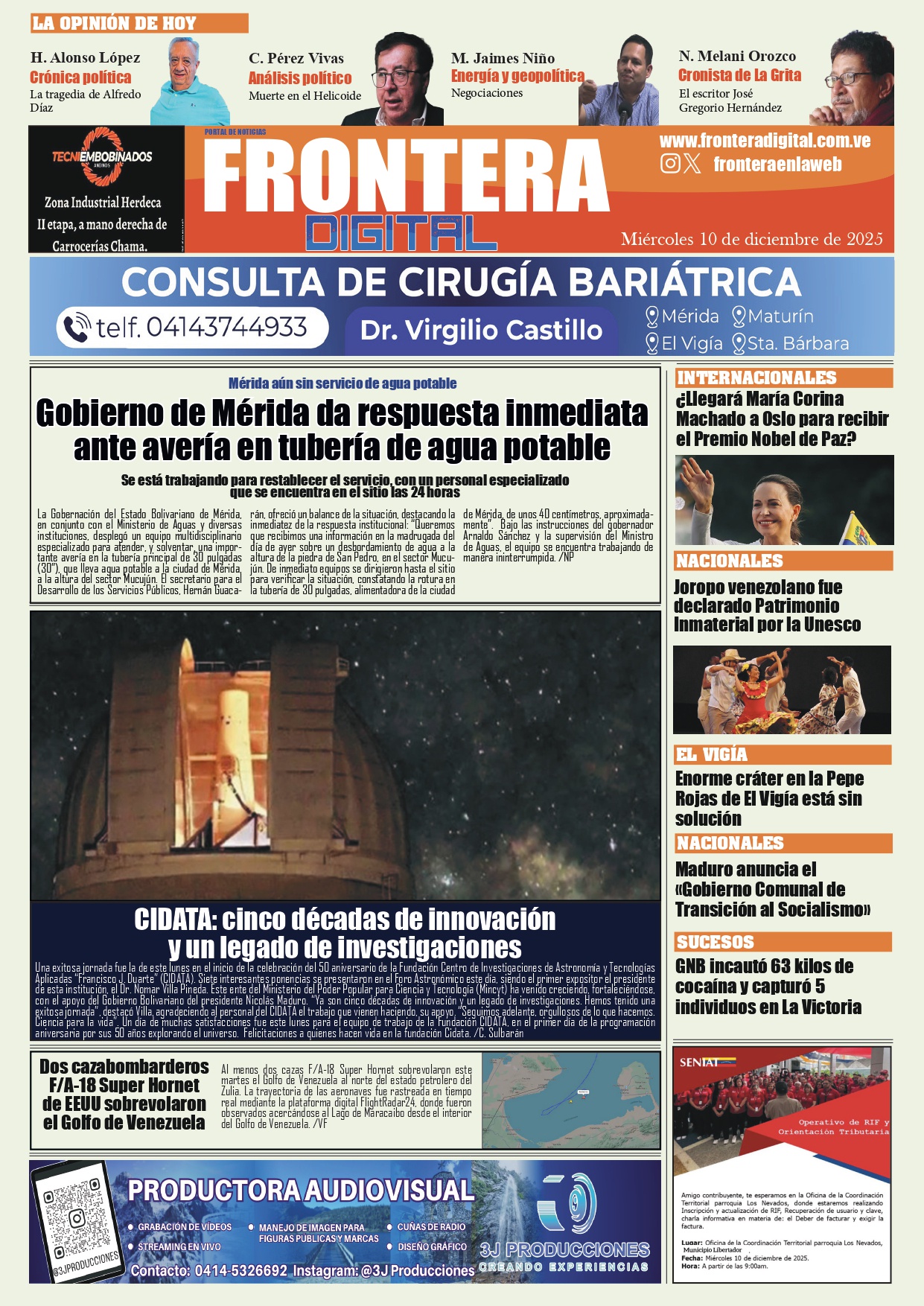 10 Dec 2025, 09:04 • 1 minuto de lectura Portadas de este miércoles 10 de diciembre de 2025 Por La Patilla Compartir Compartir noticia Facebook Twitter / X WhatsApp Telegram LinkedIn Copiar enlace Enlaces relacionados Ver noticia original
