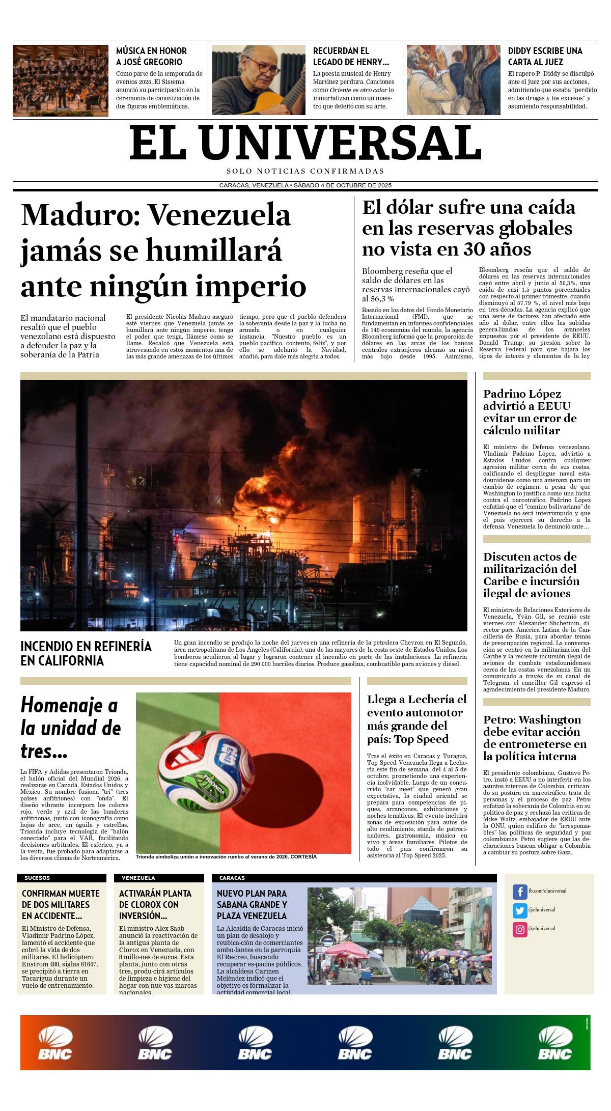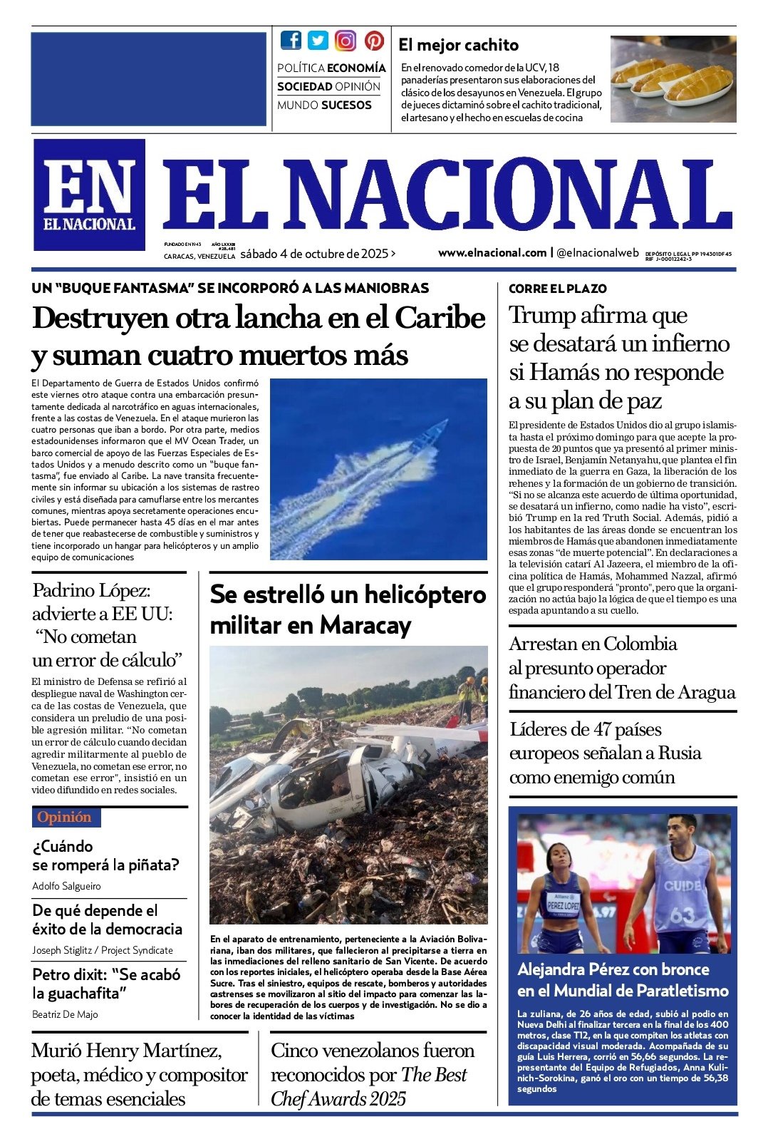 Portadas de este sábado 4 de octubre de 2025