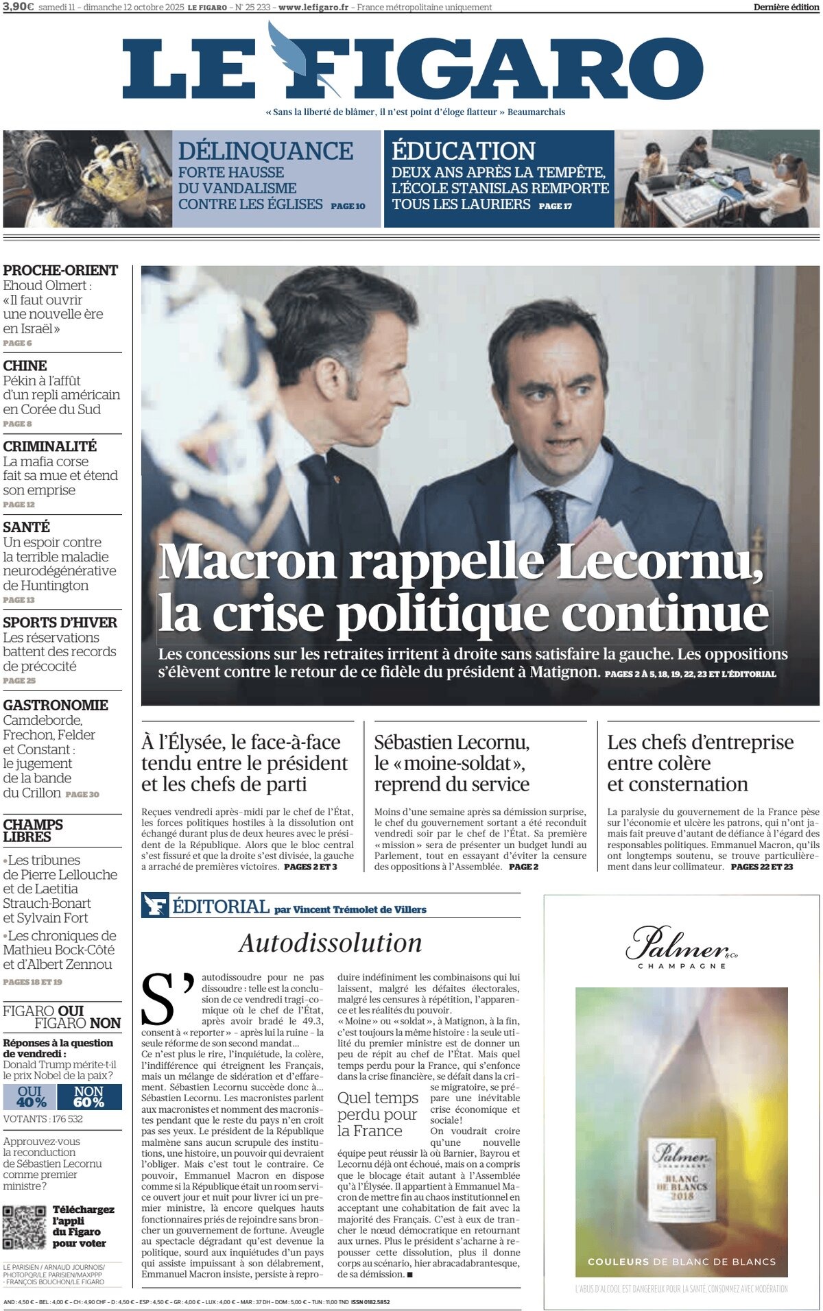 Portadas de la prensa internacional de este domingo 12 de octubre de 2025
