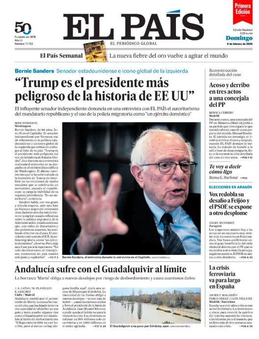 07 Feb 2026, 23:31 • 1 minuto de lectura Portadas de la prensa internacional de este domingo 8 de febrero de 2026 Por La Patilla Compartir Compartir noticia Facebook Twitter / X WhatsApp Telegram LinkedIn Copiar enlace Enlaces relacionados Ver noticia original