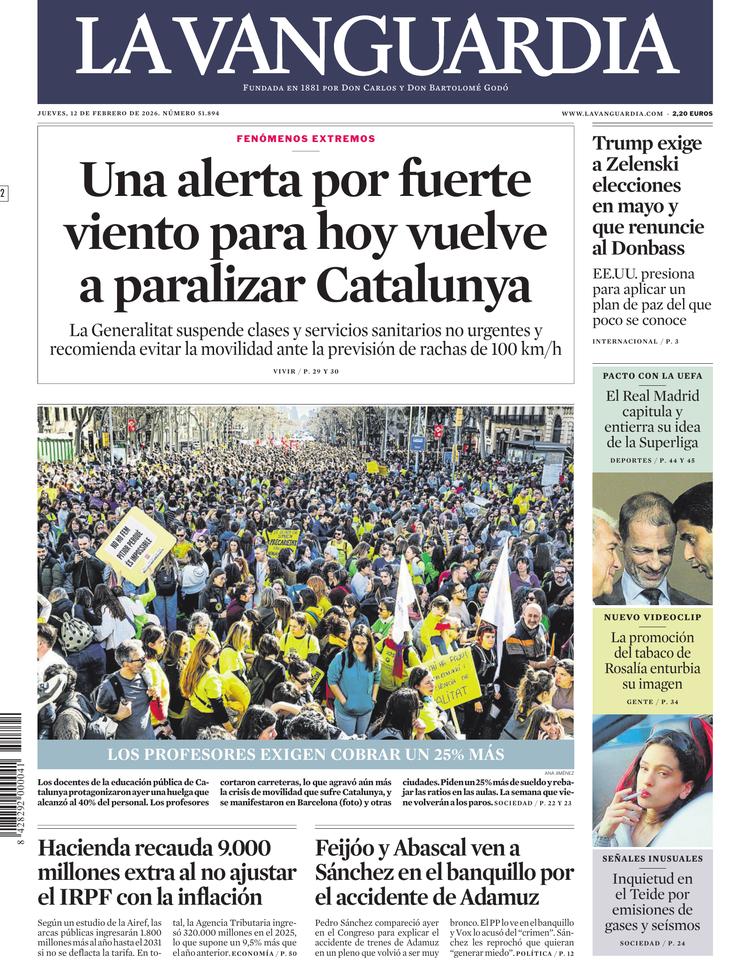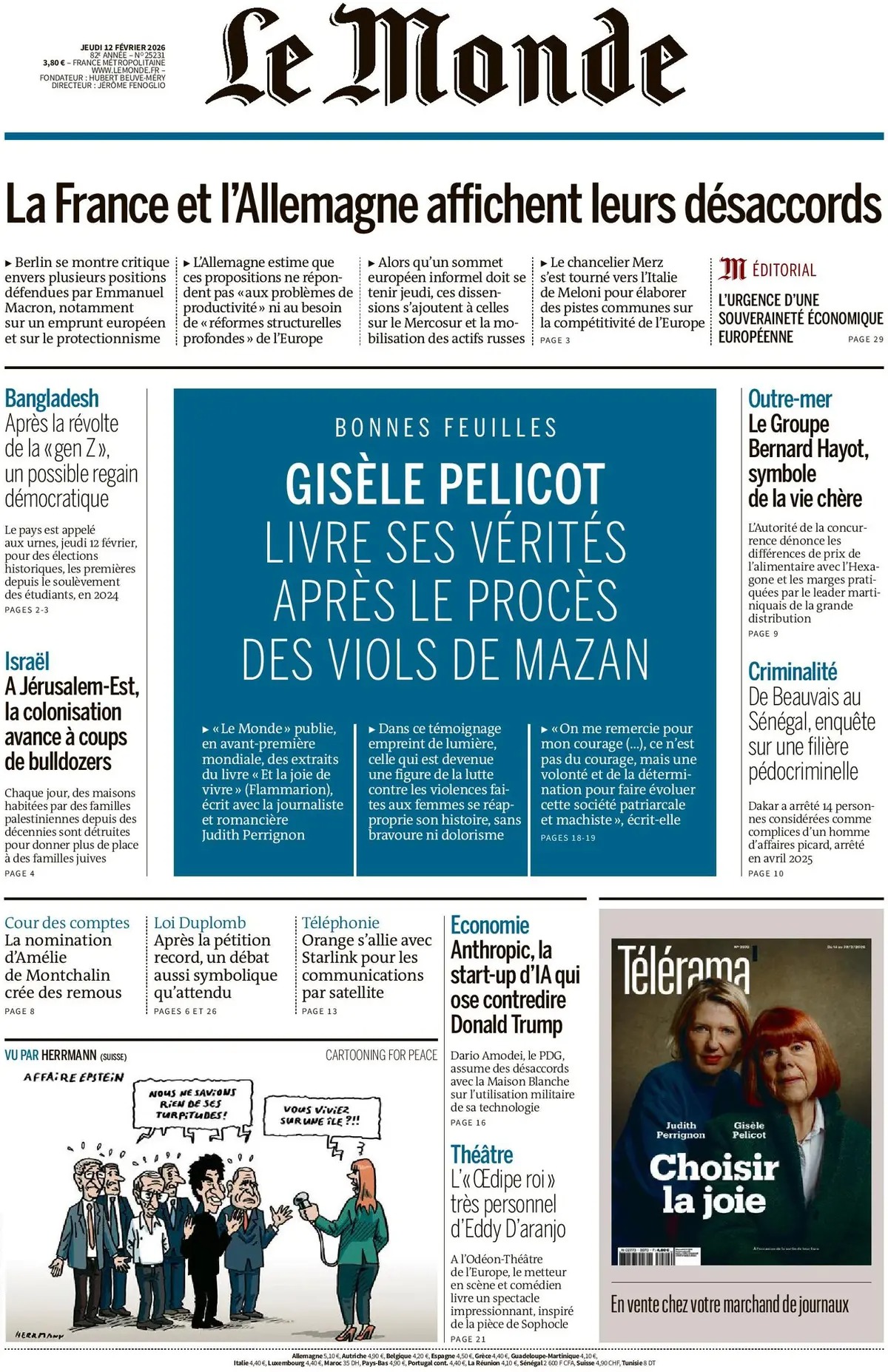 Portadas de la prensa internacional de este jueves 12 de febrero de 2026