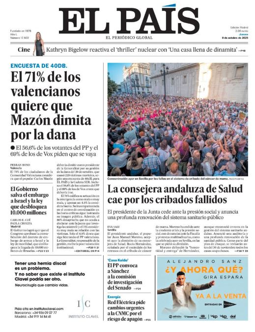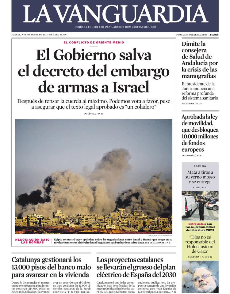 08 Oct 2025, 23:20 • 1 minuto de lectura Portadas de la prensa internacional de este jueves 9 de octubre de 2025 Por La Patilla Compartir Compartir noticia Facebook Twitter / X WhatsApp Telegram LinkedIn Copiar enlace Enlaces relacionados Ver noticia original