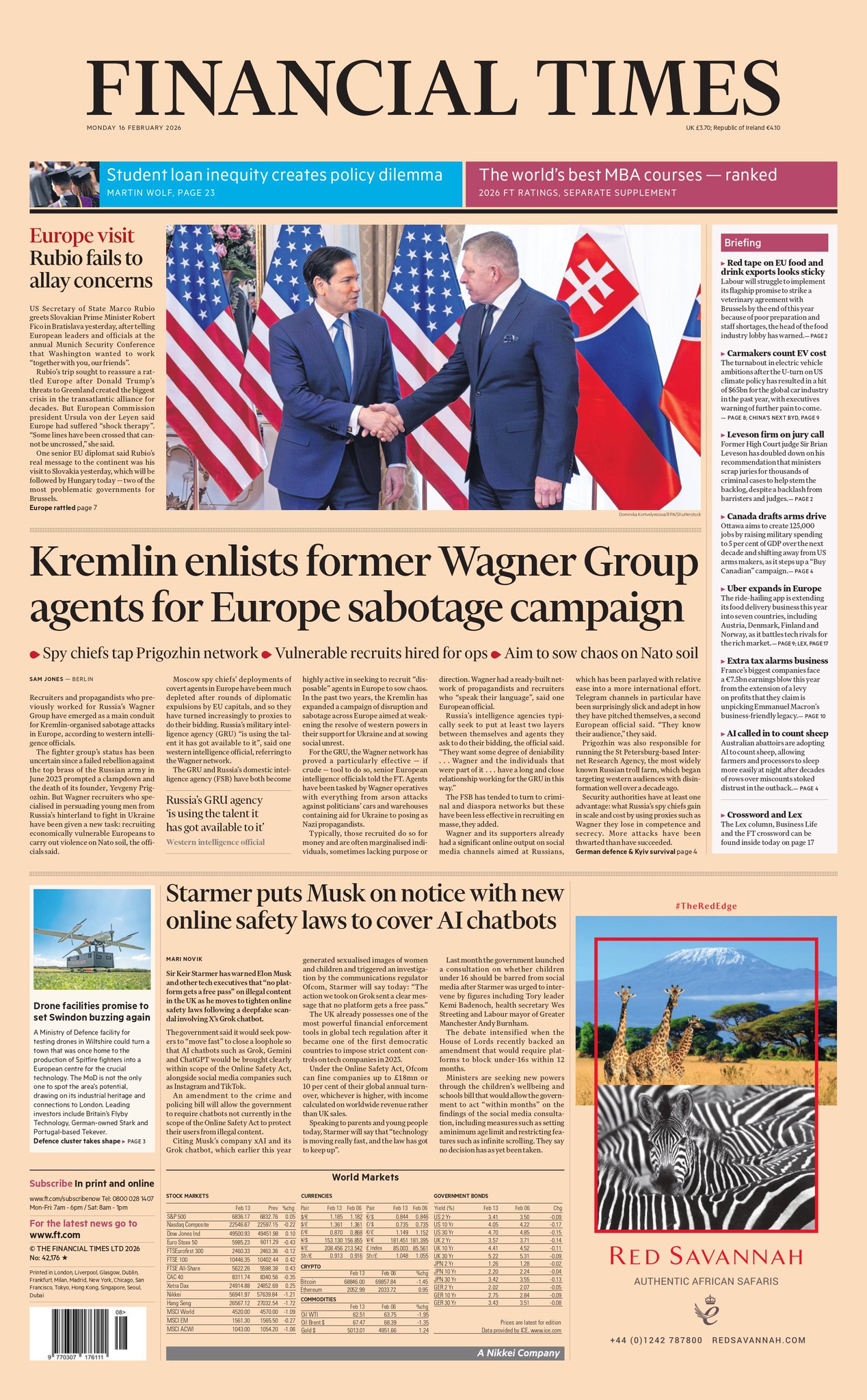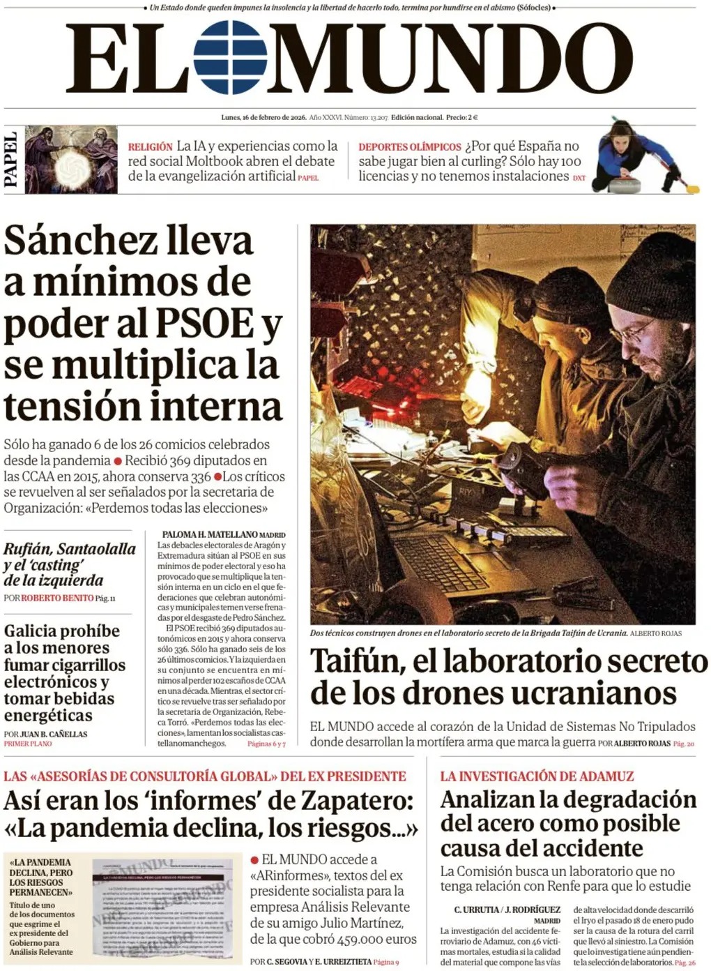 Portadas de la prensa internacional de este lunes 16 de febrero de 2026