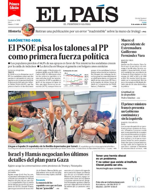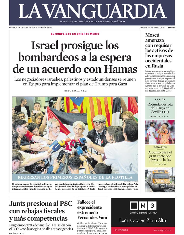05 Oct 2025, 23:20 • 1 minuto de lectura Portadas de la prensa internacional de este lunes 6 de octubre de 2025 Por La Patilla Compartir Compartir noticia Facebook Twitter / X WhatsApp Telegram LinkedIn Copiar enlace Enlaces relacionados Ver noticia original