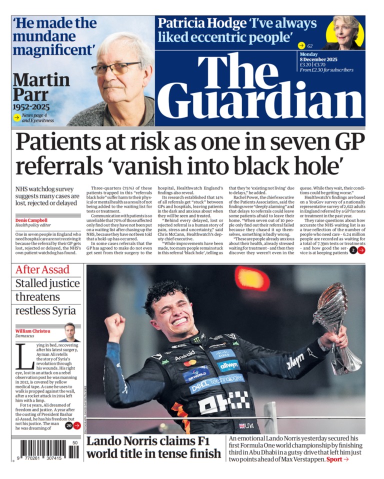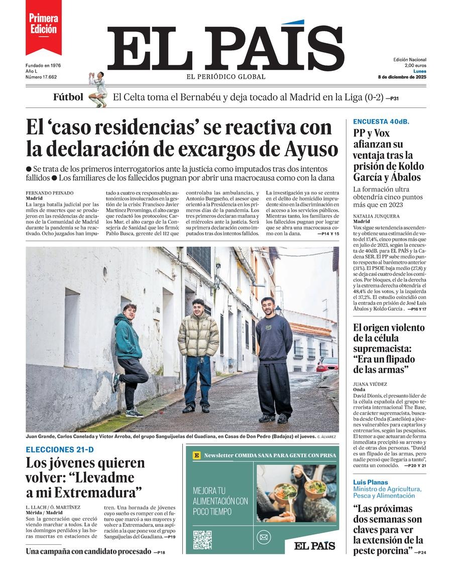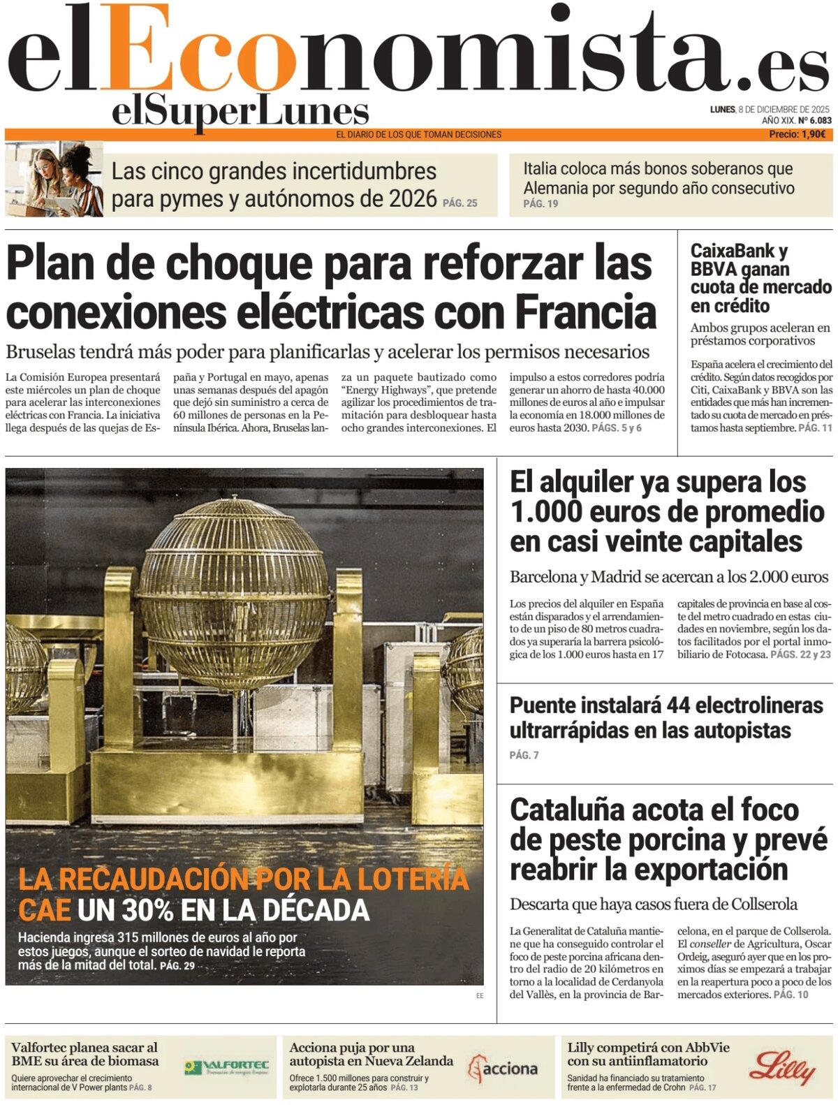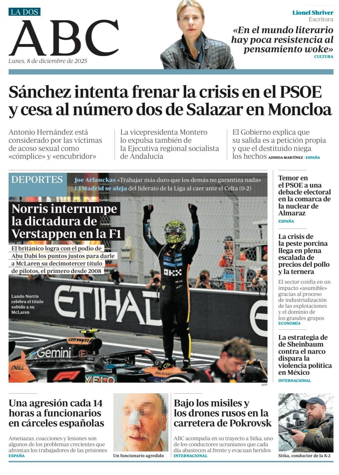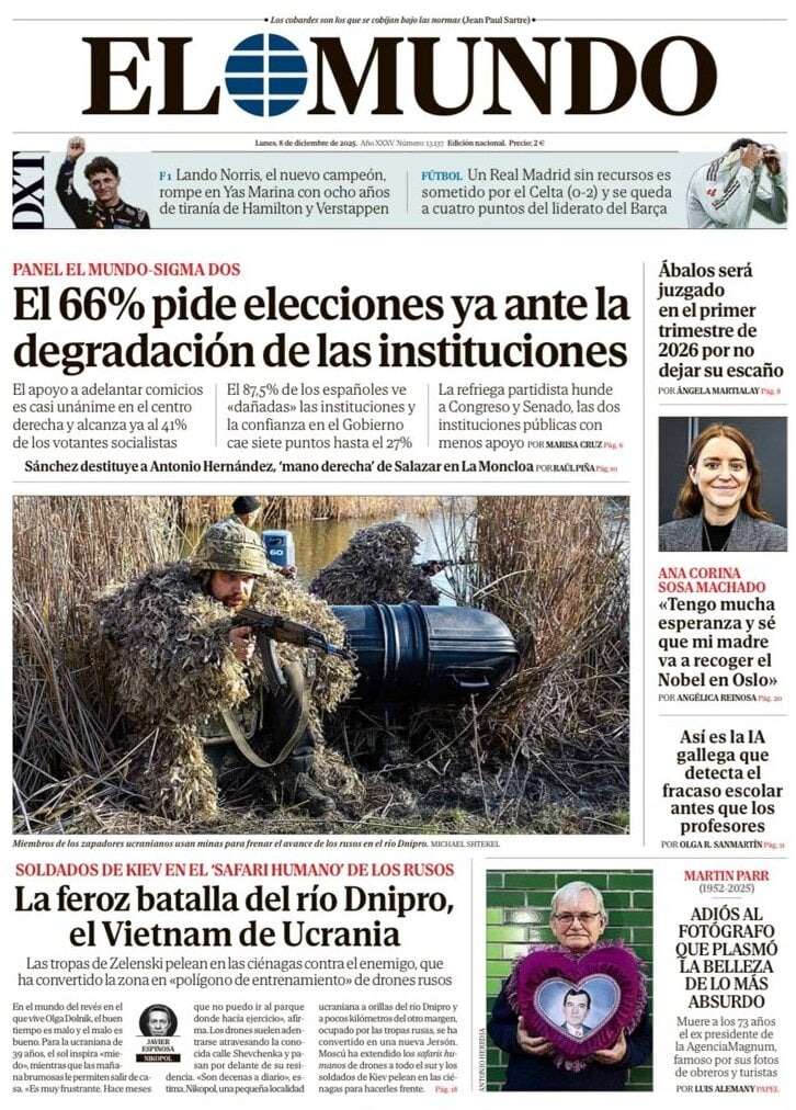Portadas de la prensa internacional de este lunes 8 de diciembre de 2025