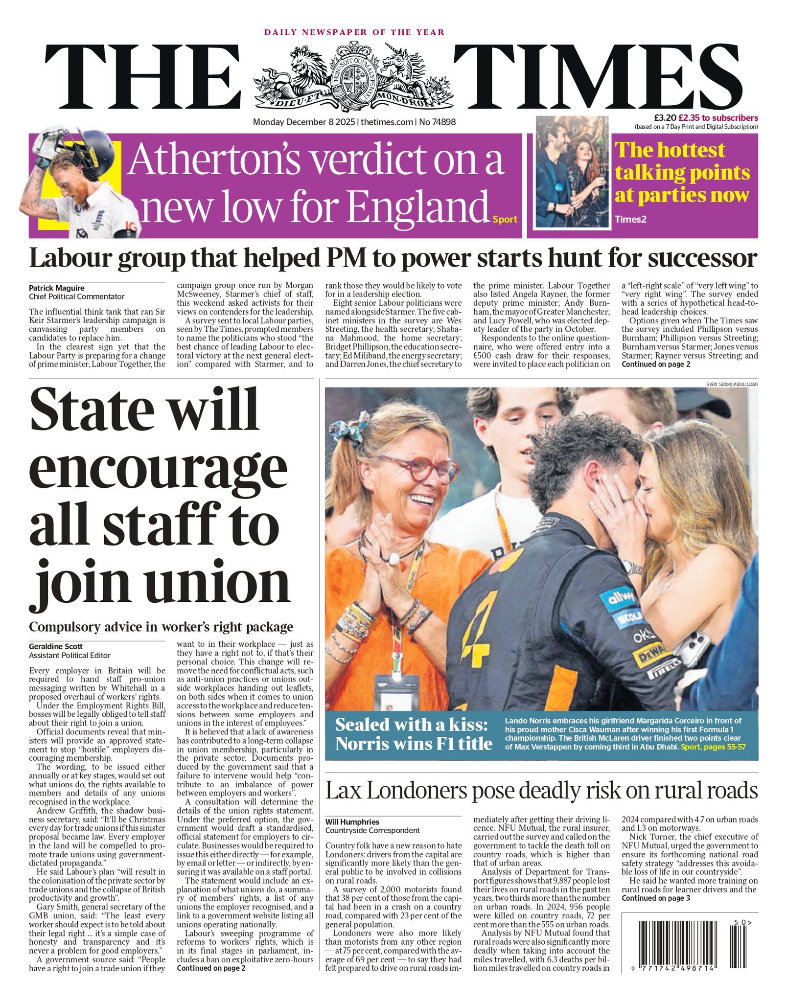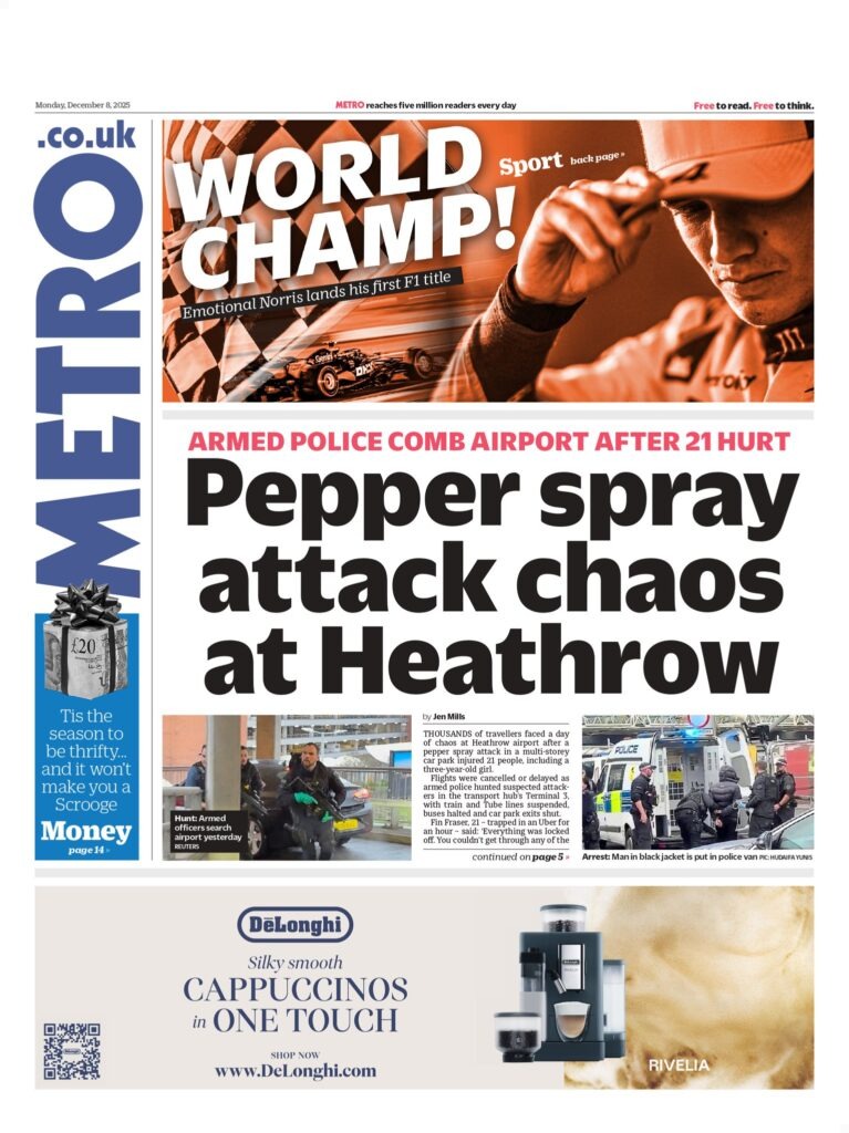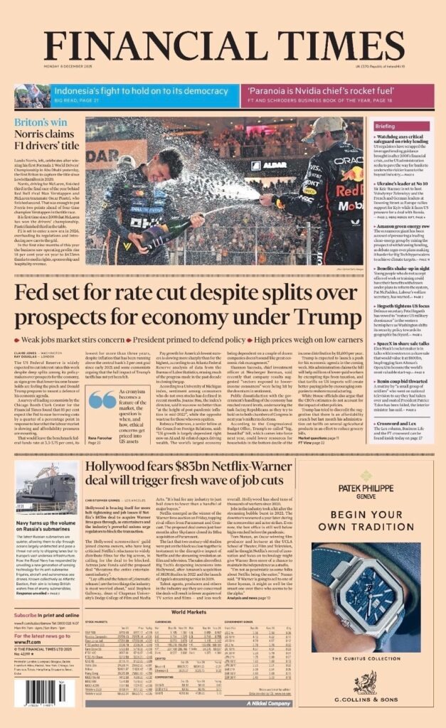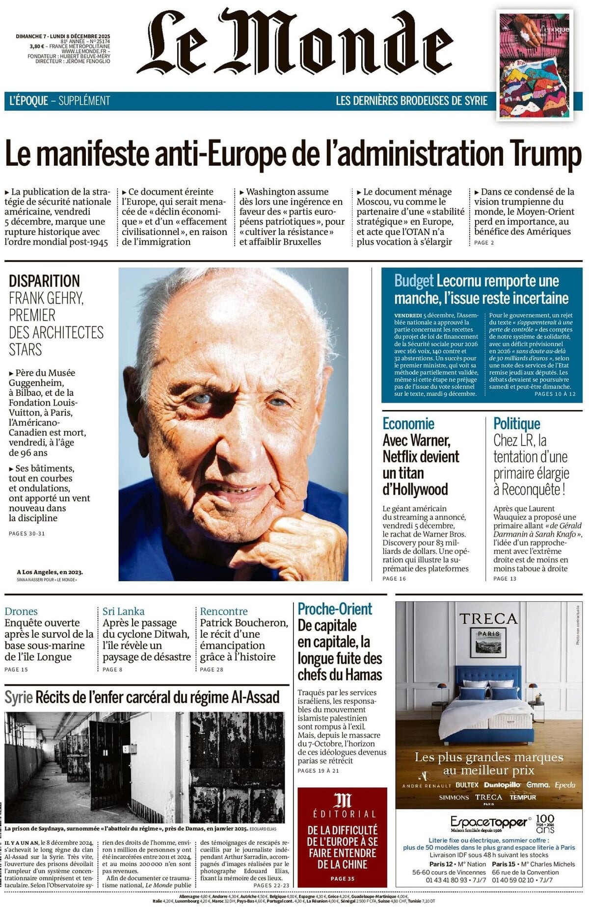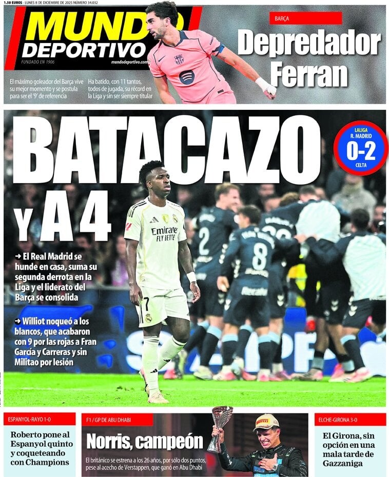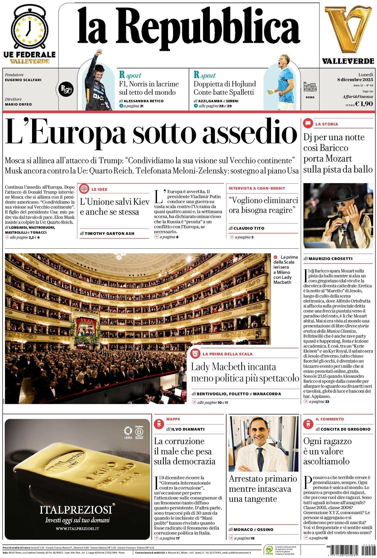 Portadas de la prensa internacional de este lunes 8 de diciembre de 2025