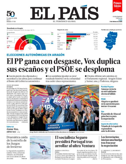 09 Feb 2026, 00:14 • 1 minuto de lectura Portadas de la prensa internacional de este lunes 9 de febrero de 2026 Por La Patilla Compartir Compartir noticia Facebook Twitter / X WhatsApp Telegram LinkedIn Copiar enlace Enlaces relacionados Ver noticia original