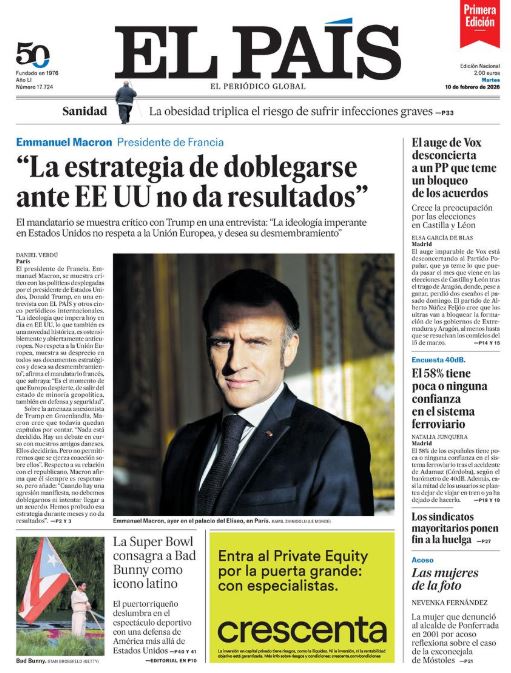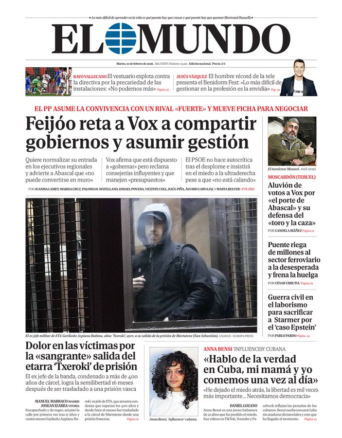 Portadas de la prensa internacional de este martes 10 de febrero de 2026