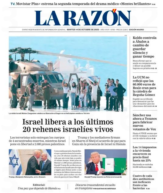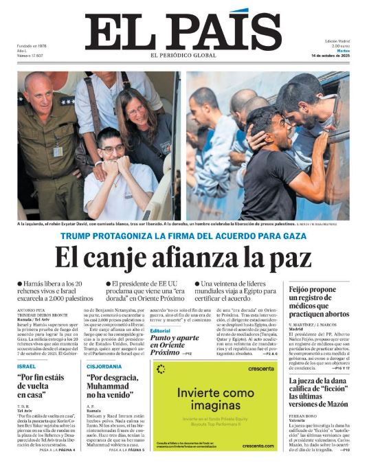 13 Oct 2025, 23:19 • 1 minuto de lectura Portadas de la prensa internacional de este martes 14 de octubre de 2025 Por La Patilla Compartir Compartir noticia Facebook Twitter / X WhatsApp Telegram LinkedIn Copiar enlace Enlaces relacionados Ver noticia original