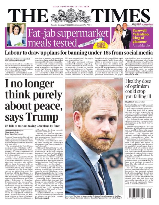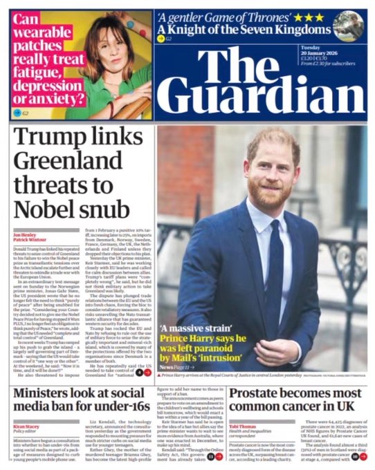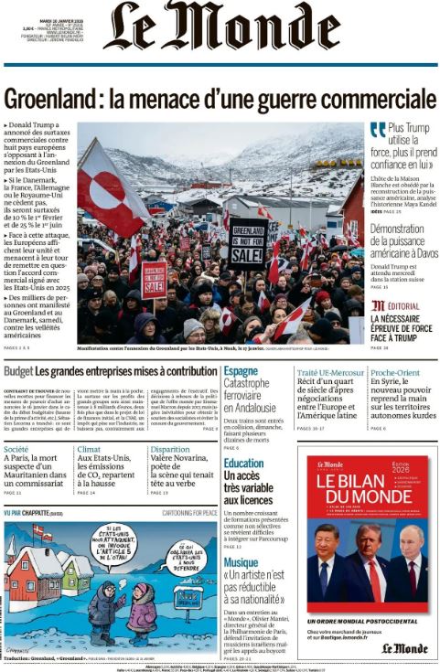 Portadas de la prensa internacional de este martes 20 de enero de 2026
