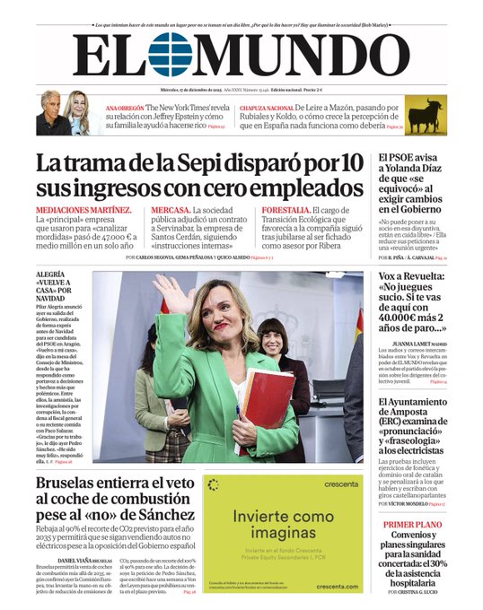 Portadas de la prensa internacional de este miércoles 17 de diciembre de 2025