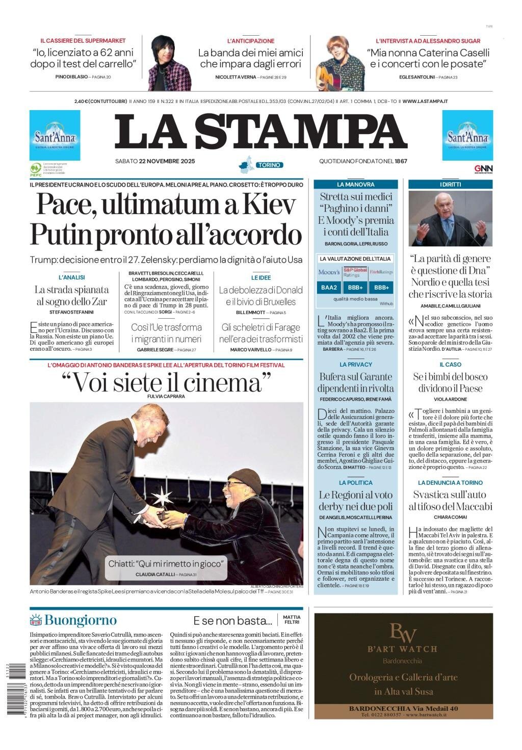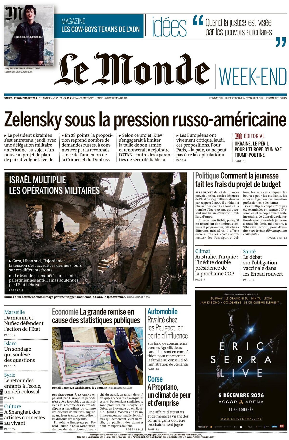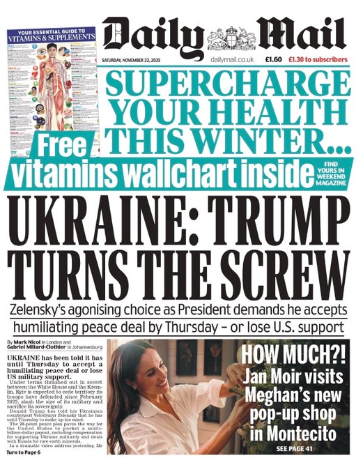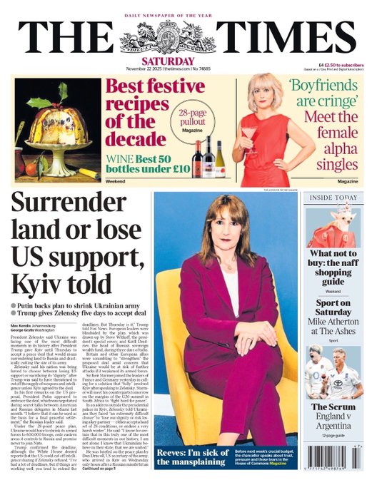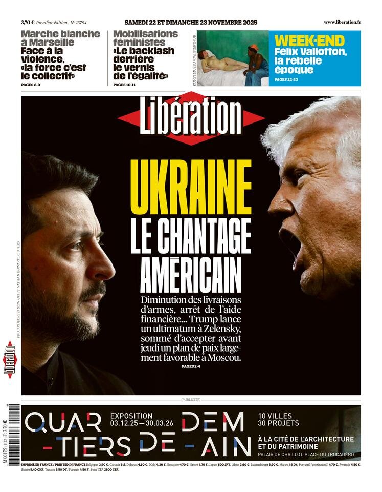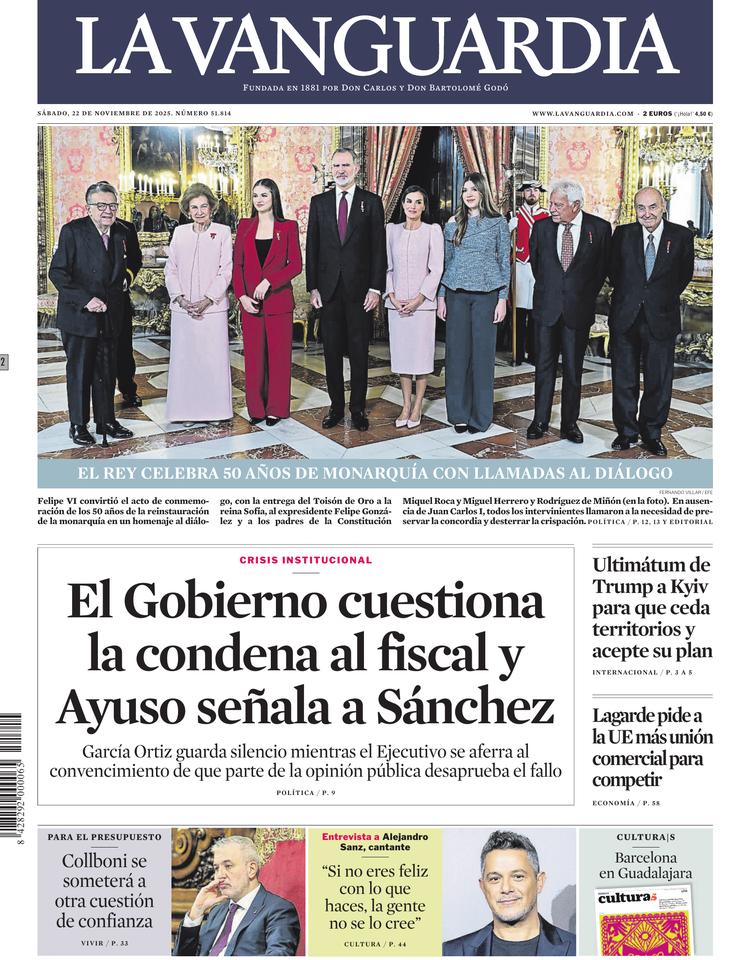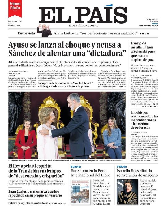 Portadas de la prensa internacional de este sábado 22 de noviembre de 2025