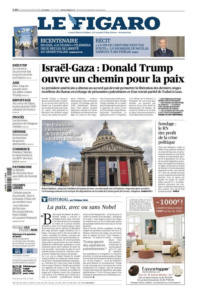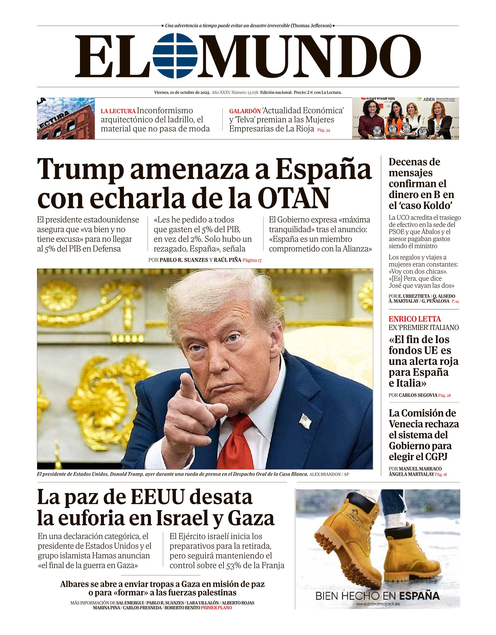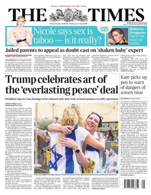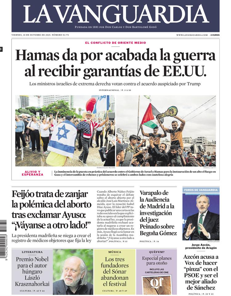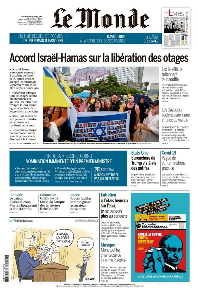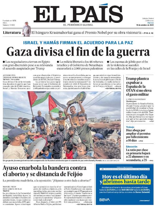 Portadas de la prensa internacional de este viernes 10 de octubre de 2025