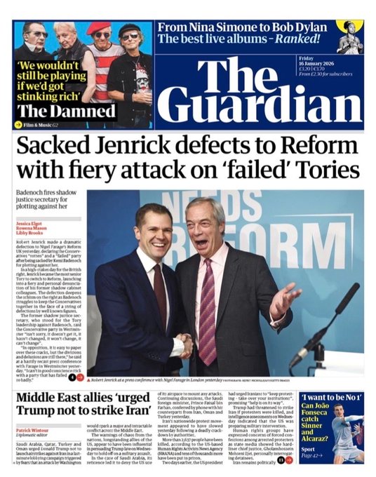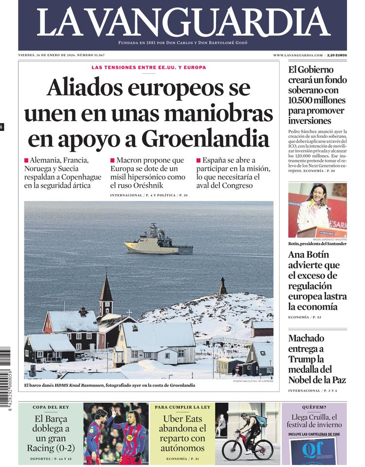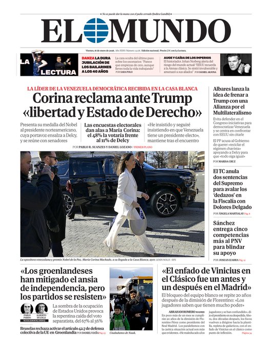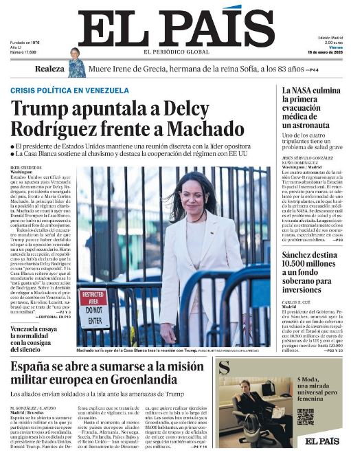 16 Jan 2026, 00:13 • 1 minuto de lectura Portadas de la prensa internacional de este viernes 16 de enero de 2026 Por La Patilla Compartir Compartir noticia Facebook Twitter / X WhatsApp Telegram LinkedIn Copiar enlace Enlaces relacionados Ver noticia original