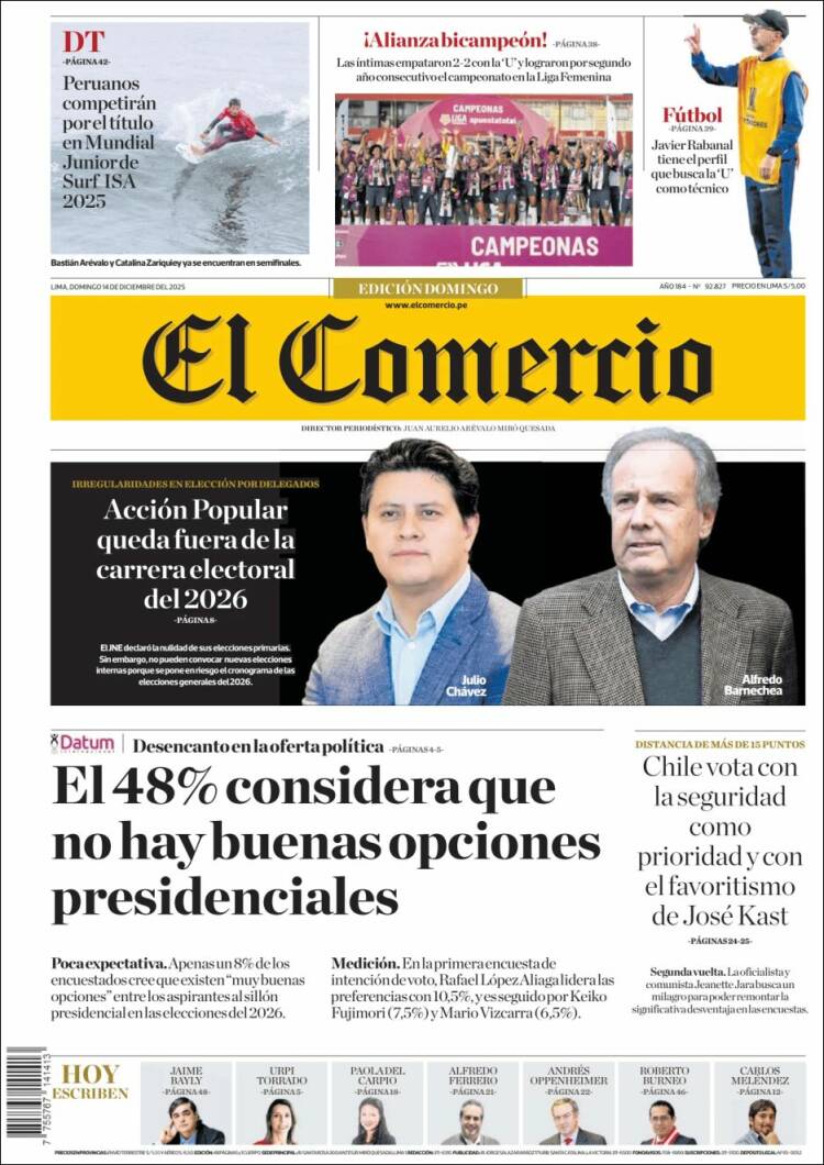 14 Dec 2025, 10:45 • 1 minuto de lectura Portadas latinoamericanas de 14 de diciembre de 2025 Por La Patilla Compartir Compartir noticia Facebook Twitter / X WhatsApp Telegram LinkedIn Copiar enlace Enlaces relacionados Ver noticia original