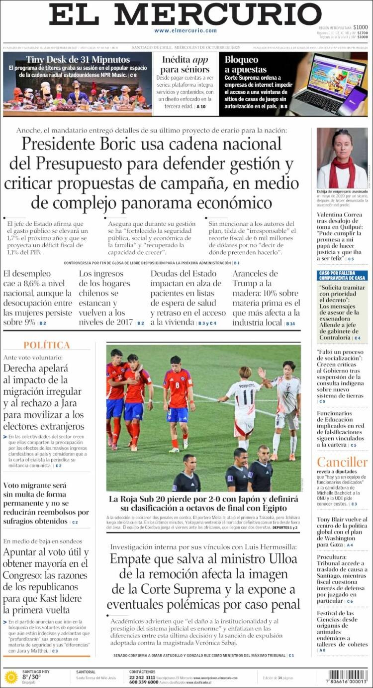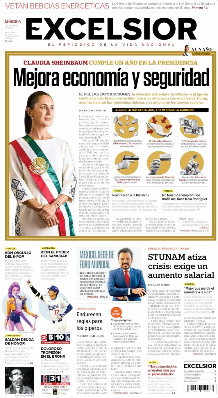 Portadas latinoamericanas de este 1 de octubre de 2025