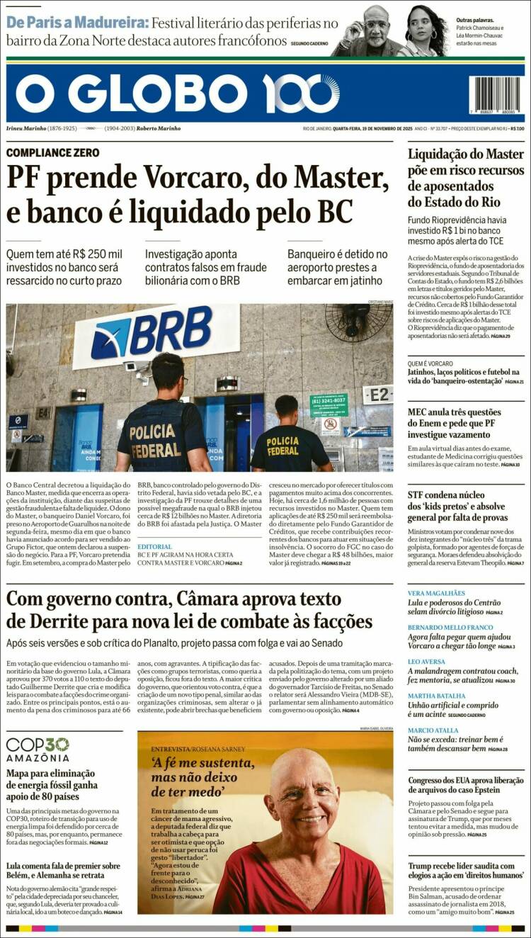 19 Nov 2025, 10:05 • 1 minuto de lectura Portadas latinoamericanas de este 19 de noviembre de 2025 Por La Patilla Compartir Compartir noticia Facebook Twitter / X WhatsApp Telegram LinkedIn Copiar enlace Enlaces relacionados Ver noticia original