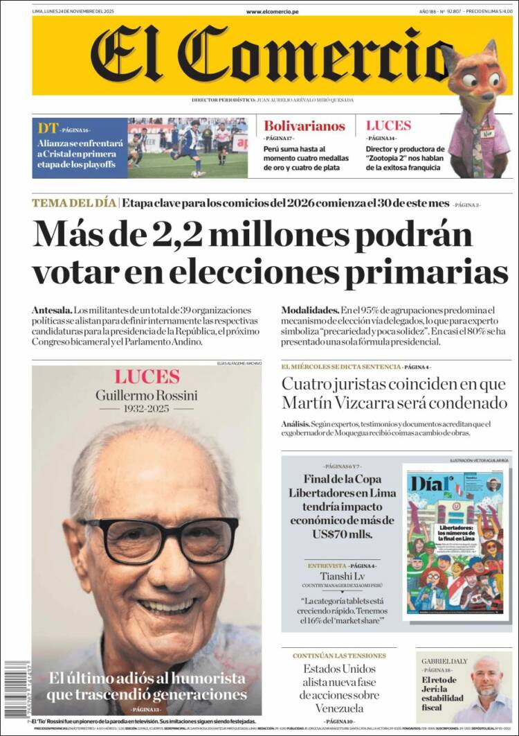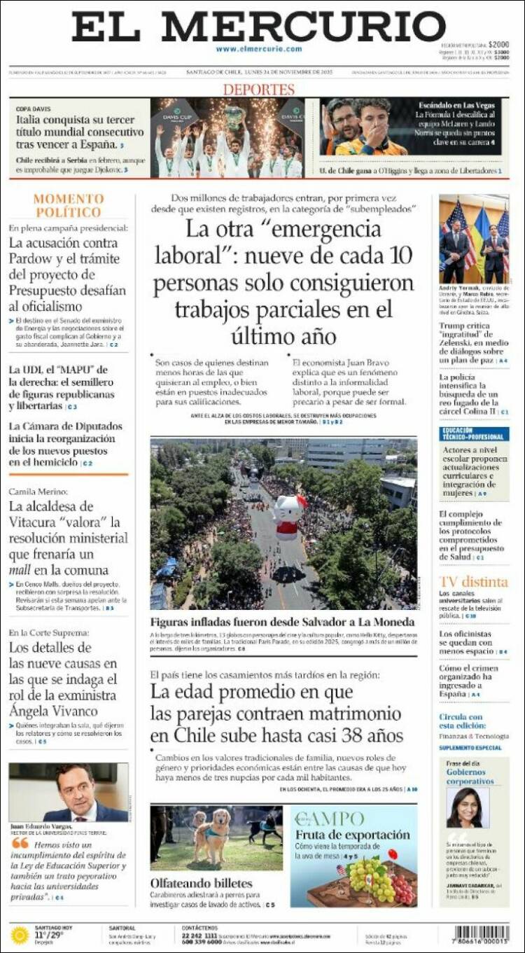 24 Nov 2025, 10:19 • 1 minuto de lectura Portadas latinoamericanas de este 24 de noviembre de 2025 Por La Patilla Compartir Compartir noticia Facebook Twitter / X WhatsApp Telegram LinkedIn Copiar enlace Enlaces relacionados Ver noticia original