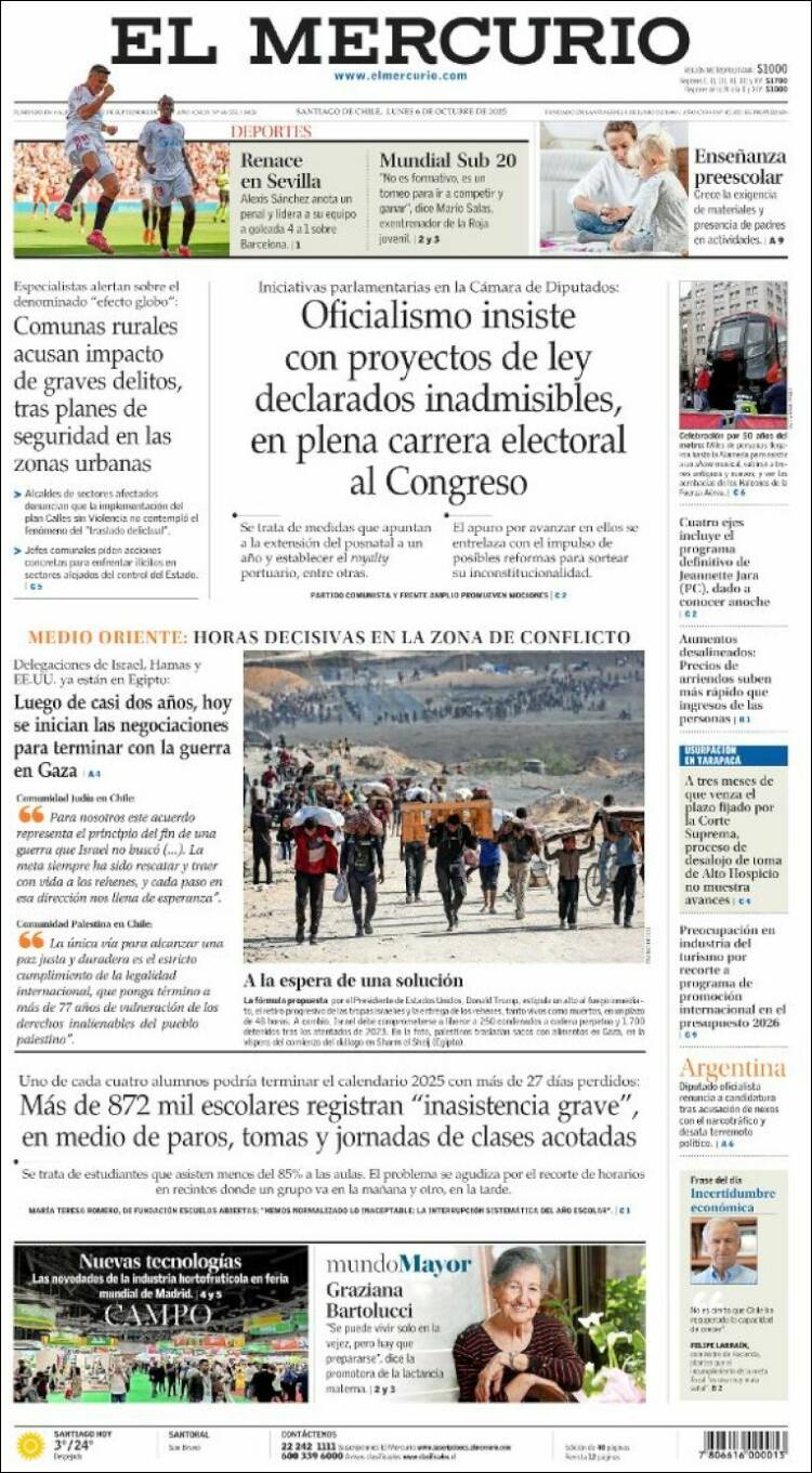 Portadas latinoamericanas de este 6 de octubre de 2025