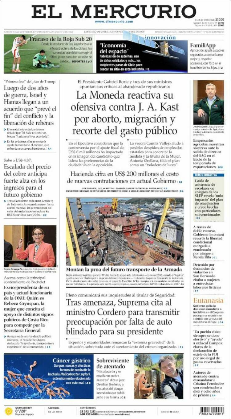 Portadas latinoamericanas de este 9 de octubre de 2025