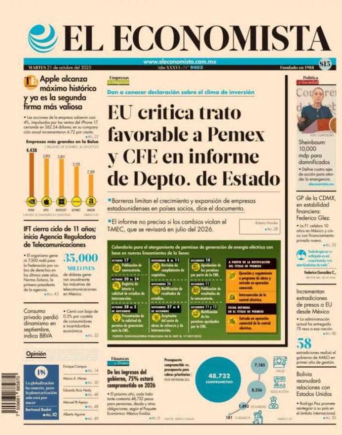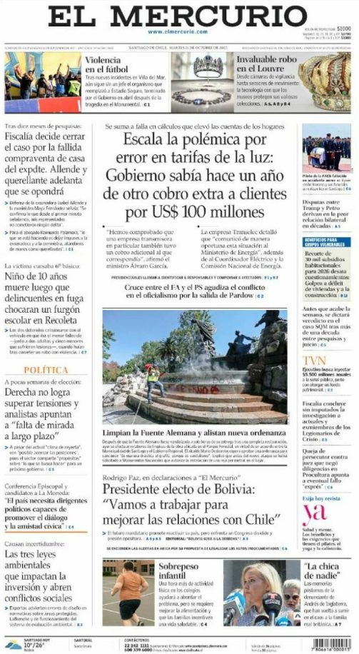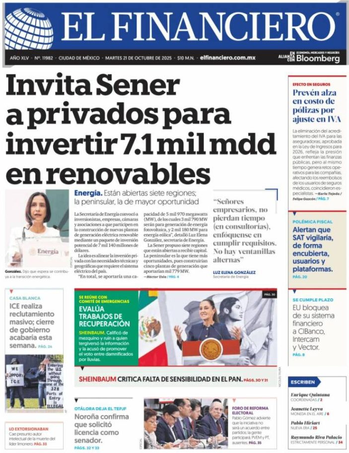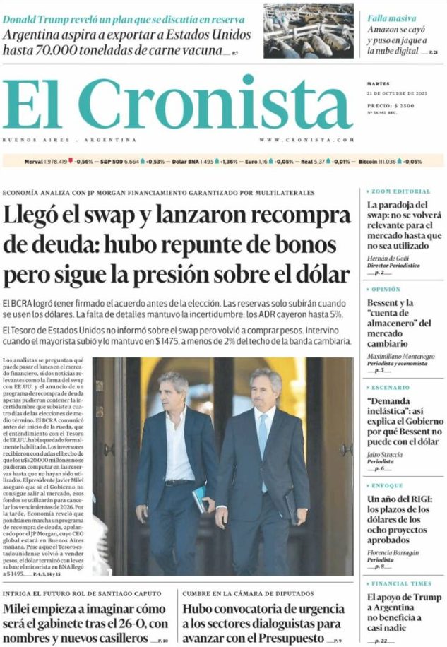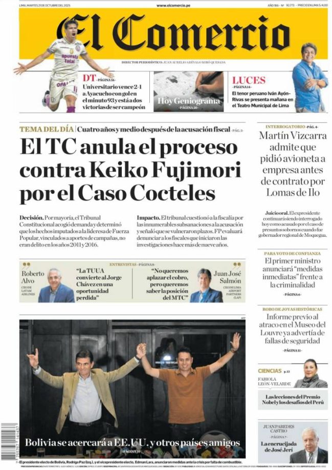 Portadas latinoamericanas de este martes 21 de octubre de 2025